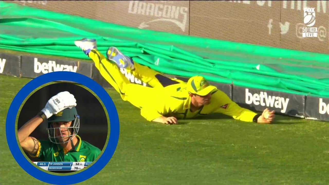 প্রোটিয়াদের ইনিংসের ৪৭ তম ওভারে দুরন্ত ক্যাচ নেন শন অ্যাবট। নাথান এলিসকে ওই ওভারের প্রথম তিন বলে একটি ছক্কা এবং দু’টি চার মারেন প্রোটিয়া তারতা মার্কো জ্যানসেন। এর পর ওই ওভারের চতুর্থ বলেও বড় শট খেলেছিলেন জ্যানসেন। তিনি ভেবেছিলেন সেই শটটিও বাউন্ডারি পেরিয়ে যাবে। কিন্তু ওই শটটির কারণেই উইকেট হারিয়ে বসেন মার্কো। শন অ্যাবট একেবারে ডিপ কভার থেকে দৌড়ে এসে শরীর বাতাসে ভাসিয়ে দিয়ে বাজপাখির মতো ছোঁ মেরে এক হাতে ক্যাচ ধরে নেন। ওই ভাবে শরীর শূন্যে ভাসিয়ে যে ক্যাচ ধরে ফেলবেন অ্যাবট তা অনেকেই ভাবতে পারেননি। যার ফলে, মার্কো জ্যানসেন ওই ক্যাচ দেখে অবাক হয়ে যান। অ্যাবটের এক হাতে নেওয়া ক্যাচ দেখে মাথায় হাত দিয়ে বসেন মার্কো। সোশ্যাল মিডিয়ায় এই ভিডিয়ো ভাইরাল হয়েছে। ৩২ রান করে আউট হন মার্কো।