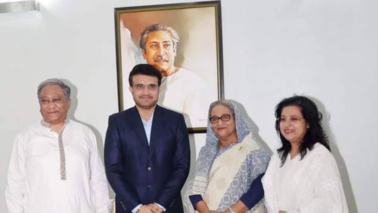 ভারতের প্রাক্তন অধিনায়ক তথা বোর্ড সভাপতি সৌরভ গঙ্গোপাধ্য়ায়ের সঙ্গে বাংলাদেশের প্রধানমন্ত্রী শেখ হাসিনার সুসম্পর্ক অজানা নয়। ভারতীয় ক্রিকেট দল প্রথম গোলাপী বলে দিন-রাতের টেস্ট খেলে বাংলাদেশের বিরুদ্ধেই। কলকাতার ইডেন গার্ডেন্সে সেই ম্যাচে বিশেষ অতিথি হিসেবে ছিলেন বাংলাদেশের প্রধানমন্ত্রী। এ বার বাংলাদেশ সফরে প্রধানমন্ত্রীর সঙ্গে দেখা করতে ভুললেন না সৌরভ। সস্ত্রীক দেখা করলেন শেখ হাসিনার সঙ্গে। ছিলেন বাংলাদেশ ক্রিকেট বোর্ডের প্রধান নাজমুল হাসান পাপন।