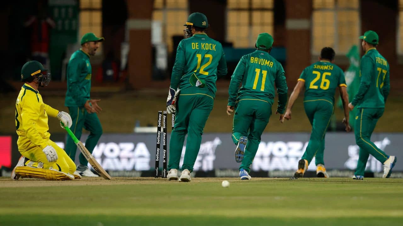 অস্ট্রেলিয়ার হয়ে বিধ্বংসী শুরু ডেভিড ওয়ার্নারের। গত ম্যাচেই সেঞ্চুরি করেছেন। তিনি ক্রিজে থাকা অবধি অস্ট্রেলিয়ার জয়ের সম্ভাবনা বেঁচে ছিল। দলীয় ৭৯ রানে ওপেনিং জুটি ভাঙে। ওয়ার্নারকে রান আউট করে অজি শিবিরে বড় ধাক্কা দেন কেশব মহারাজ। ১৪০-১ থেকে ২২৭ রানে অলআউট অস্ট্রেলিয়া। বাঁ হাতি রিস্ট স্পিনার তাবরাইজ শামসি ৭ ওভারে ২৯ রান দিয়ে ২ উইকেট নেন। বাঁ হাতি স্পিনার কেশব মহারাজের ঝুলিতে ১০ ওভারে ২টি মেডেন সহ ৩৭ রানে ২ উইকেট। তরুণ পেসার জেরাল্ড কোয়েৎজে ৪ উইকেট নিলেও প্রচুর রান খরচ করেছেন। প্রোটিয়া স্পিন জুটির ৬৬টি ডট বলের চাপ থেকে বেরোতে পারেনি অস্ট্রেলিয়া।