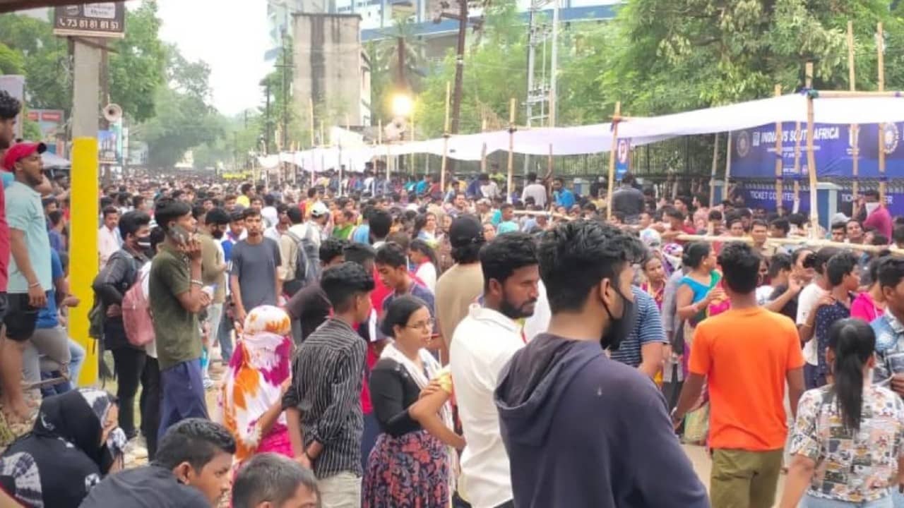 ওড়িশা: দেশের মাঠে ভারতের (India) ম্যাচ থাকা মানেই ভারতের ক্রিকেটপ্রেমীদের একটা আলাদা উত্তেজনা থাকে। ইডেন হোক বা অরুণ জেটলি স্টেডিয়াম যেখানেই ম্যাচ থাকুক না কেন ম্যাচের আগে থেকেই টিকিটের (Ticket) জন্য হাহাকার করতে দেখা যায় একাধিক সমর্থককে। করোনার (COVID 19) চোখ রাঙানি এখনও দেশ থেকে যায়নি। তবে দেশের মাঠে চলা ভারত-দক্ষিণ আফ্রিকা (India vs South Africa) ৫ ম্যাচের টি-২০ সিরিজে স্টেডিয়ামে ১০০ শতাংশ দর্শক প্রবেশের অনুমতি দেওয়া হয়েছে। দিল্লিতে প্রথম ম্যাচে হেরে ১-০ ব্যবধানে পিছিয়ে রয়েছে মেন ইন ব্লু। আগামীকাল কটকের বারাবাতি স্টেডিয়ামে সিরিজের দ্বিতীয় ম্যাচে বাভুমাদের মুখে নামবেন পন্থরা। তার আগে টিকিটের জন্য চরম বিশৃঙ্খলা দেখা গিয়েছে বারাবাতি স্টেডিয়ামে। পরিস্থিতি নিয়ন্ত্রণের বাইরে চলে যাওয়ায় স্টেডিয়ামে থাকা পুলিশ বাধ্য হয় লাঠি চার্জ করতে।