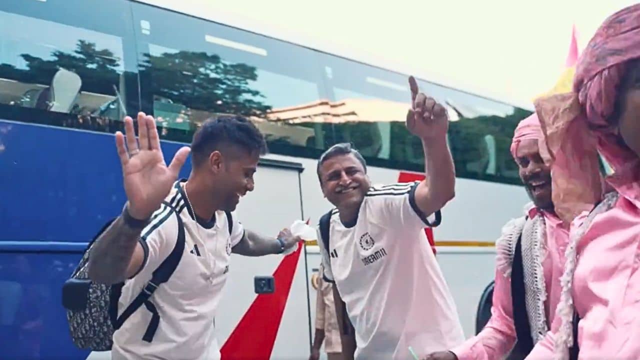 সেখানে সঞ্জু, রিঙ্কু, রিয়ান, নীতীশদের নাম ধরে সুর মিলিয়ে ঢাক-ঢোল বাজাতে থাকেন শিল্পীরা। এরপর ক্যাপ্টেন সূর্যকুমার বাস থেকে নামার পর ঢাকের তালে ভাঙড়া নাচ শুরু করেন। সোশ্যাল মিডিয়ায় সেই ভিডিয়ো ভাইরাল হয়েছে। তাতে সকলের বিশেষ নজর কেড়েছে ক্যাপ্টেন স্কাইয়ের নাচ।