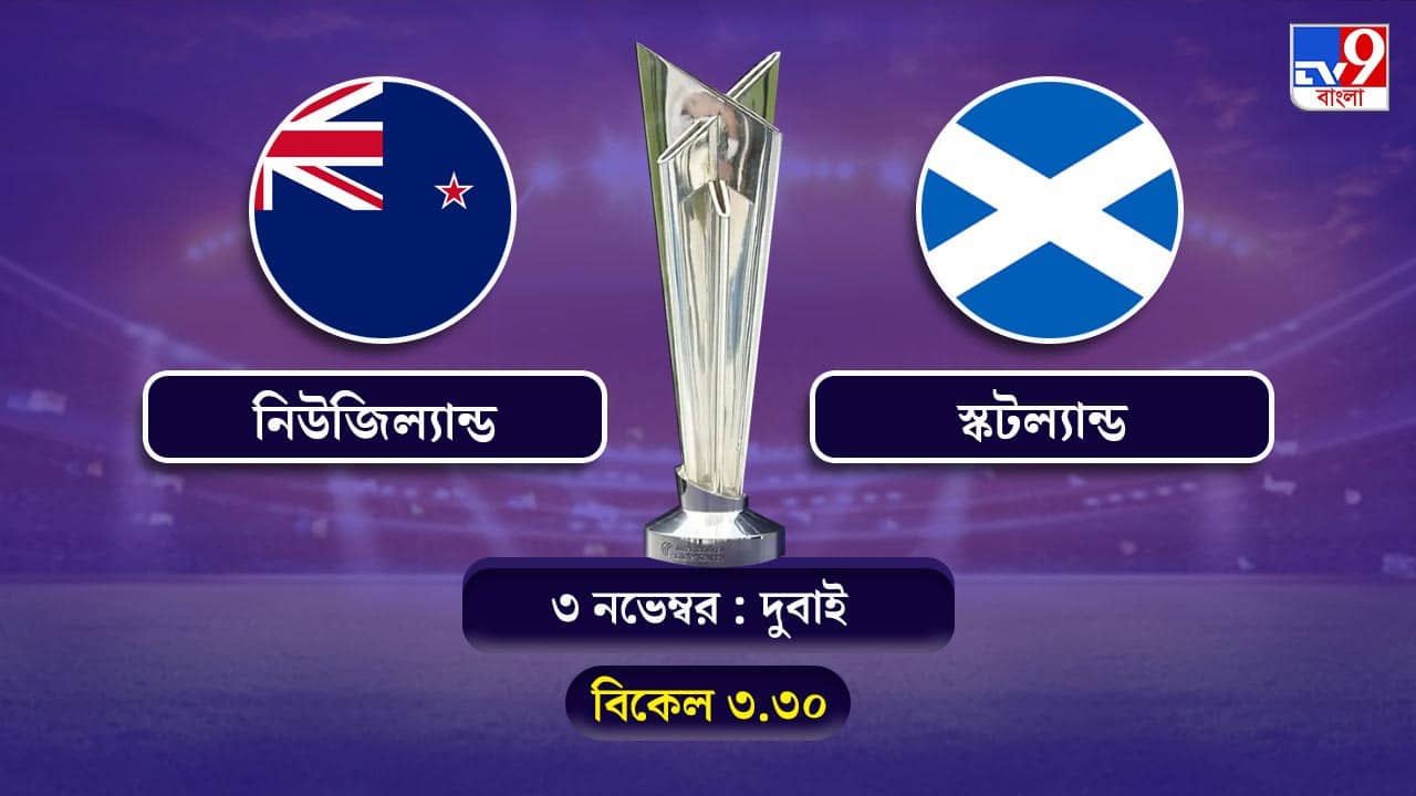 টি-টোয়েন্টি বিশ্বকাপে নিউজিল্যান্ড বনাম স্কটল্যান্ড ম্যাচটি আজ বুধবার (৩ নভেম্বর) হবে।