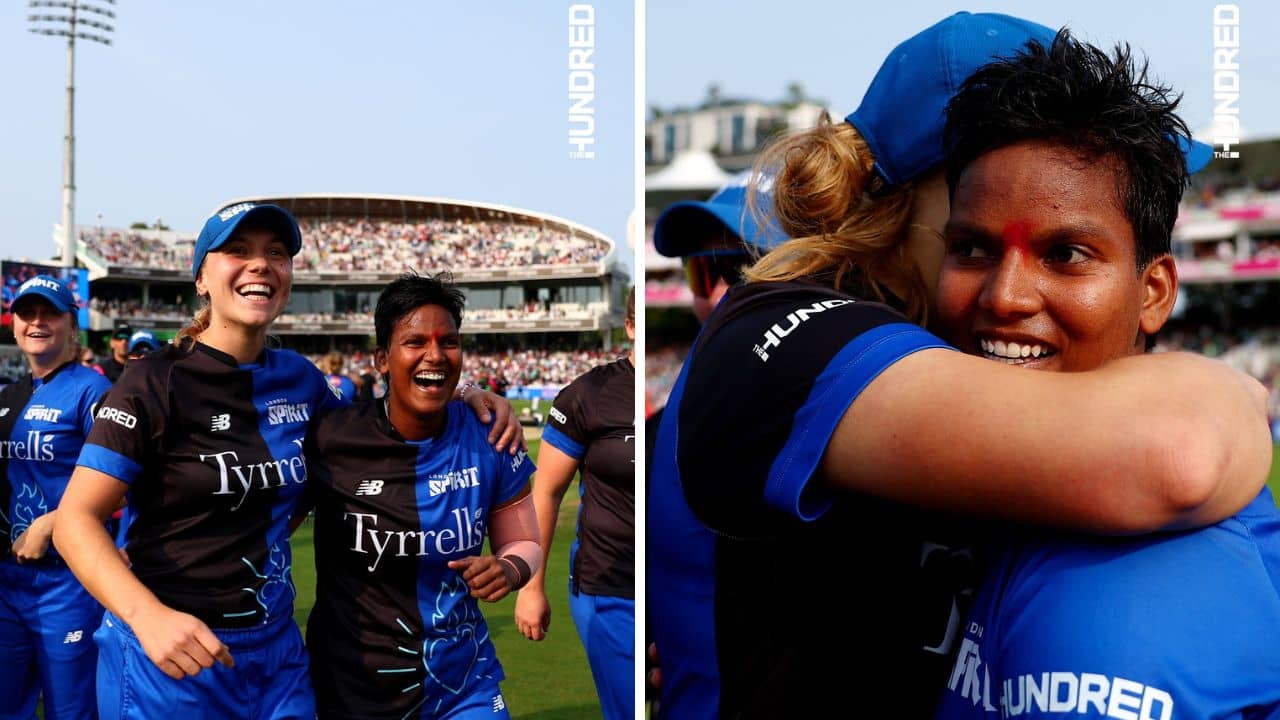 প্রথম বার মেয়েদের হান্ড্রেডে চ্যাম্পিয়ন লন্ডন স্পিরিট। আর এই জয়ে গুরুত্বপূর্ণ ভূমিকা নিলেন ভারতের অলরাউন্ডার দীপ্তি শর্মা। ছয় মেরে ম্যাচ ফিনিশ করেন বাংলার এই অলরাউন্ডার। স্বাভাবিক ভাবেই সেই প্রসঙ্গ চলে আসে…। দীপ্তি ফিনিশেস অফ ইন স্টাইল! প্রচণ্ড চাপের মুহূর্তে ঠান্ডা মাথায় ম্যাচ ফিনিশ করেন দীপ্তি শর্মা। প্রথম বার হান্ড্রেড চ্যাম্পিয়নের স্বাদ। বাড়তি উচ্ছ্বাস হওয়াই স্বাভাবিক। ভারতের এই অলরাউন্ডারের শট গ্যালারিতে আছড়ে পড়তেই সতীর্থরা দৌড়ে মাঠে ঢুকে পড়েন। আর কী হল ম্যাচে?