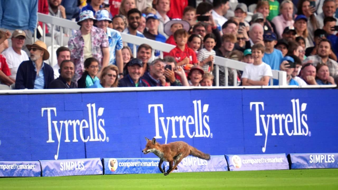 ভারত-ইংল্যান্ড টেস্ট সিরিজ শেষের পরই শুরু হয়ে গিয়েছে দ্য হান্ড্রেড টুর্নামেন্টে। লন্ডন স্পিরিট বনাম ডিফেন্ডিং চ্যাম্পিয়ন ওভাল স্পিরিট ম্যাচে লর্ডসের ঘটনা। ম্যাচ চলাকালীন একটি শেয়াল ঢুকে পড়ে মাঠে। দ্রুতগতিতে মাঠ প্রদক্ষিণও করে। প্রায় ১ মিনিট ধরে এমন পরিস্থিতি। খেলা বন্ধ থাকে। সে সময় ব্যাটিং করছিলেন লন্ডন স্পিরিটের পেসার ড্যানিয়েল ওব়্যাল। ধারাভাষ্যে থাকা স্টুয়ার্ট ব্রড, ইয়ন মর্গ্যানের মতো কিংবদন্তিরা ছিলেন। এই দৃশ্য দেখে হাসি চাপতে পারেননি।