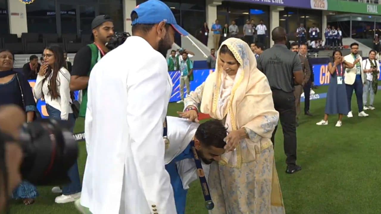 দুবাই: ভারতীয় টিমের প্রত্যেক ক্রিকেটারের মধ্যে একটা আলাদা বন্ডিং রয়েছে। দল হারুক বা জিতুক, টিমের ক্রিকেটাররা সংঘবদ্ধ থাকেন। একে অপরের সাফল্যে যেমন খুশিতে মেতে ওঠেন, তেমনই কোনও ক্রিকেটার ভালো পারফর্ম না করতে পারলে অন্য ক্রিকেটার সাহায্যের হাত বাড়ান, ভরসা জোগান। দুবাইতে রবিবার মিনি বিশ্বকাপ জিতেছে টিম ইন্ডিয়া। স্বাভাবিকভাবেই ভারতীয় শিবিরে বাঁধনছাড়া উচ্ছ্বাস। প্রত্যেক ক্রিকেটার পরিবার, নিকটজনের সঙ্গে নিজেদের জয় যে সময় ভাগ করে নিচ্ছিলেন, তখনই মহম্মদ সামির (Mohammed Shami) মাকে দেখে তাঁর দিকে এগিয়ে আসেন বিরাট কোহলি (Virat Kohli)। তাঁর পায়ে হাত দিয়ে প্রণামও করেন বিরাট। তারপর থেকে সোশ্যাল মিডিয়ায় ভাইরাল সেই ছবি, ভিডিয়ো।