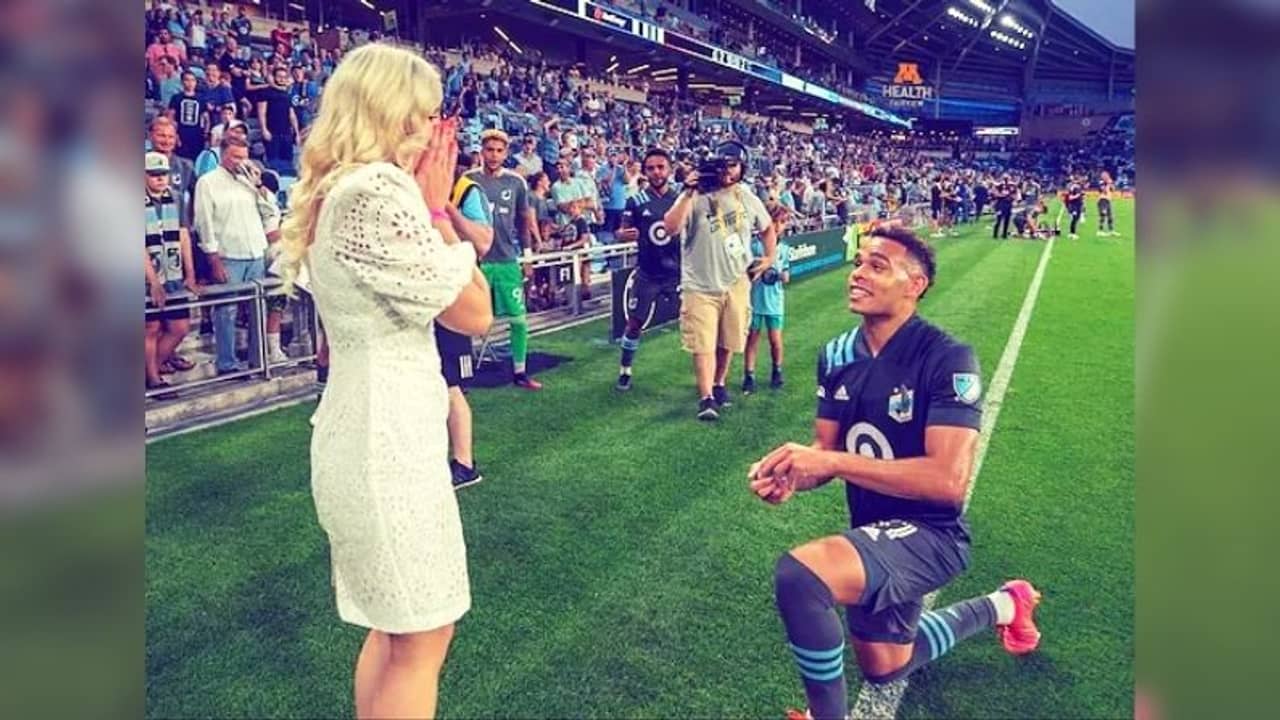 মার্কিন যুক্তরাষ্ট্রে রবিবার মেজর লিগ সকার (Major League Soccer) ম্যাচে মুখেমুখি হয়েছিল মিনেসোটা এফসি (Minnesota FC) ও সান জোস আর্থকোয়েক (San Jose Earthquakes)। গ্যালারিতে তখন হাজির হাজার হাজার দর্শক। ম্যাচের শেষে বান্ধবী পেত্রা ভুকোভিচকে (Petra Vukovic) সাইডলাইনে ডেকে, হাঁটু গেড়ে বসে বিয়ের প্রস্তাব দিলেন মিনোসোটার মিডফিল্ডার হাসানি ডটসন স্টিফেনসন (Hassani Dotson Stephenson)। গ্যালারি থেকে তখন দর্শকদের উল্লাস দেখার মতো। বিয়ের প্রস্তাবে রাজি হয়ে যান পেত্রা। পুরো ঘটনার সাক্ষী রইল মিনোসোটার স্টেডিয়াম। সমস্ত মুহূর্ত হল ক্যামেরাবন্দি।