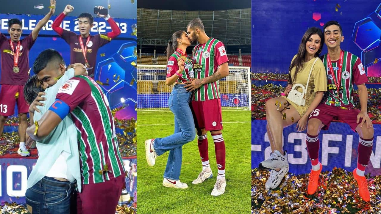 কলকাতা: কেউ ঠোঁটে ঠোঁট ডুবিয়ে দিলেন। কেউ পেলেন সঙ্গীর উষ্ণ আলিঙ্গন। শনিবারের মারগাওয়ের ফতোরদা স্টেডিয়ামে রুদ্ধশ্বাস আইএসএল ফাইনালের পরের দৃশ্য। টাইব্রেকারে ব্রুনো ব়্যামিরেজের কিকটা বাঁচাতেই সবুজ-মেরুন গ্যালারিতে আবির খেলা শুরু যায়। পাবলো পেরেজ বাইরে মারতেই ভারতসেরা এটিকে মোহনবাগান। পাড়ায় পাড়ায় যখন বাজির শব্দে কান পাতা দায়, তখন ফতোরদা স্টেডিয়ামের মাঠ বলছে, ‘ফুল ফুটুক না ফুটুক আজ বসন্ত’। কিয়ান নাসিরি, প্রীতম কোটাল, শুভাশিস বসুরা স্ত্রী-বান্ধবীদের ভালোবাসায় মাখামাখি। চুম্বন, আলিঙ্গন, শুভেচ্ছায় আইএসএল চ্যাম্পিয়নদের বরণ করে নিলেন সোনেলা পাল, কস্তুরী ছেত্রী, মিহিরা সিংরা। কেউ চ্যাম্পিয়নের মেডেল পরিয়ে দিলেন সঙ্গিনীর গলায়। আনন্দে, উচ্ছ্বাসে, প্রেমে, আদরে ভরপুর।