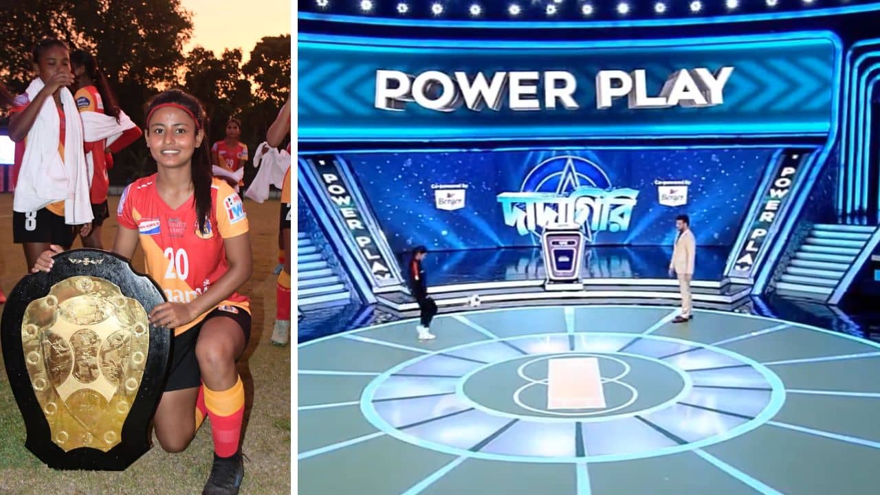 Football on stage – East Bengal Captain, Trisha Mallick & Sourav Ganguly , on the sets of 27 Jan Episode of Dadagiri. pic.twitter.com/qr7za24isG