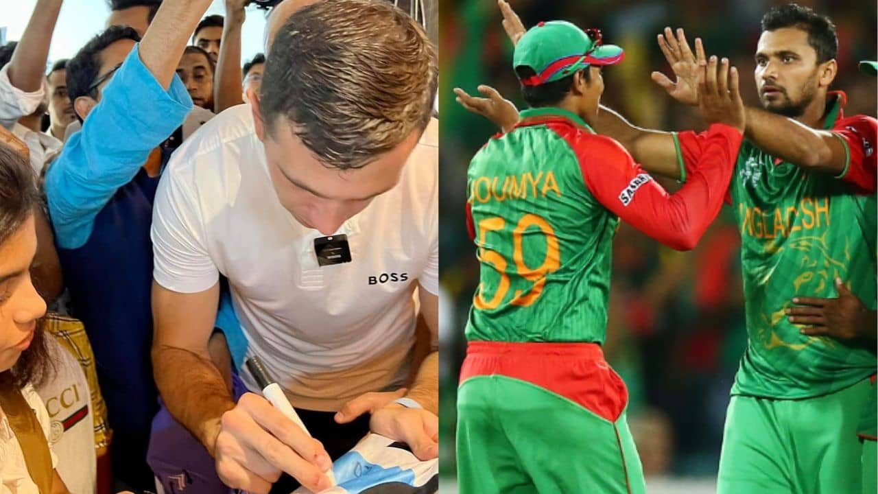 ঢাকা : কলকাতায় আসছেন বিশ্বকাপ জয়ী আর্জেন্টিনার গোলরক্ষক এমিলিয়ানো মার্টিনেজ (Emi Martinez)। এ খবর এখন আর কারও অজানা নয়। অধীর আগ্রহে ফুটবলপ্রেমীরা অপেক্ষা করছেন কাতারের বিশ্বকাপ ফাইনালে গোল্ডেন গ্লাভস জয়ীর জন্য। ক্রীড়া সংগঠক শতদ্রু দত্তের উদ্যোগে সোমবার বিকেলে তিলোত্তমায় পা রাখার কথা তাঁর। তবে সরাসরি কলকাতায় আসছেন না এমি। এই সফরে তাঁর প্রথম স্টপেজ ঢাকা। আর্জেন্টিনা থেকে স্থানীয় সময় সোমবার ভোর সাড়ে পাঁচটা নাগাদ বাংলাদেশে পৌঁছন মার্টিনেজ। সেখানে তাঁর স্পনসরের আয়োজিত একটি অনুষ্ঠানে যোগ দিয়ে দেখা করেন বাংলাদেশের প্রাক্তন ক্যাপ্টেন মাশরাফি বিন মর্তুজার সঙ্গে। এমির সঙ্গে সাক্ষাতে আপ্লুত মাশরাফি ফেসবুকে মস্ত বড় একটি পোস্ট করেছেন। আর্জেন্টিনা ভক্ত মাশরাফি পোস্টে তাঁর স্বপ্নের কথা লিখেছেন। এমিকে কাছ থেকে দেখার অভিজ্ঞতা জানিয়ে লিখেছেন, তাঁর আশা বাংলাদেশও এভাবে একদিন ফুটবল বিশ্বকাপ খেলবে! বিস্তারিত জেনে নিন TV9 Bangla Sports এর এই প্রতিবেদনে।