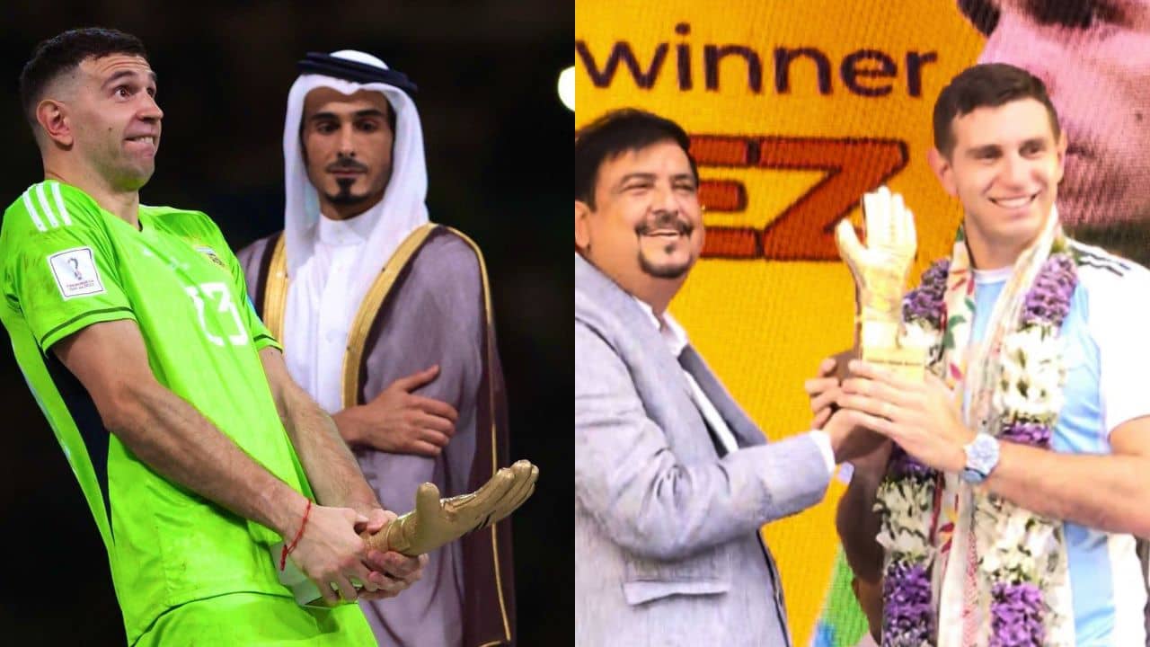 কলকাতা : এমি জ্বরে ভুগছে তিলোত্তমা। গত সোমবার কলকাতায় এসেছেন বিশ্বকাপজয়ী আর্জেন্টাইন গোলকিপার এমিলিয়ানো মার্টিনেজ (Emiliano Martinez)। দুই দিনের এই সফরে কলকাতাবাসীর কাছ থেকে নিংড়ে নিচ্ছেন ভালোবাসা। কলকাতা উত্তর থেকে দক্ষিণে যেখানেই গিয়েছেন তাঁকে একবার ছুঁয়ে দেখার, সেলফি তোলার হিড়িক। কাতার বিশ্বকাপ ফাইনালে ট্রাইব্রেকারের নায়ক শুধু বন্দিত নন, সমালোচিত। ফাইনাল ম্যাচে প্রতিপক্ষের উদ্দেশে তাঁর শারীরিক অঙ্গভঙ্গী, গোল্ডেন গ্লাভস হাতে দৃষ্টিকটূ সেলিব্রেশন সমালোচনার জন্ম দিয়েছিল। বিশেষ করে সোনার দস্তানা হাতে উদযাপন। তাতে থোড়াই কেয়ার মেসির আদরের ডিবুর। বুধবার শ্রীভূমি থেকে স্মারক হিসেবে তাঁর হাতে তুলে দেওয়া হয় ‘গোল্ডেন গ্লাভ’ পুরস্কার। মন্ত্রী সুজিত বসুর হাত থেকে পুরস্কার নিয়ে সেই বিতর্কিত ভঙ্গি করে দেখালেন এমি। যা দেখে উচ্ছ্বাসে ফেটে পড়ল জনতা। বিস্তারিত জেনে নিন TV9 Bangla Sports এর এই প্রতিবেদনে।