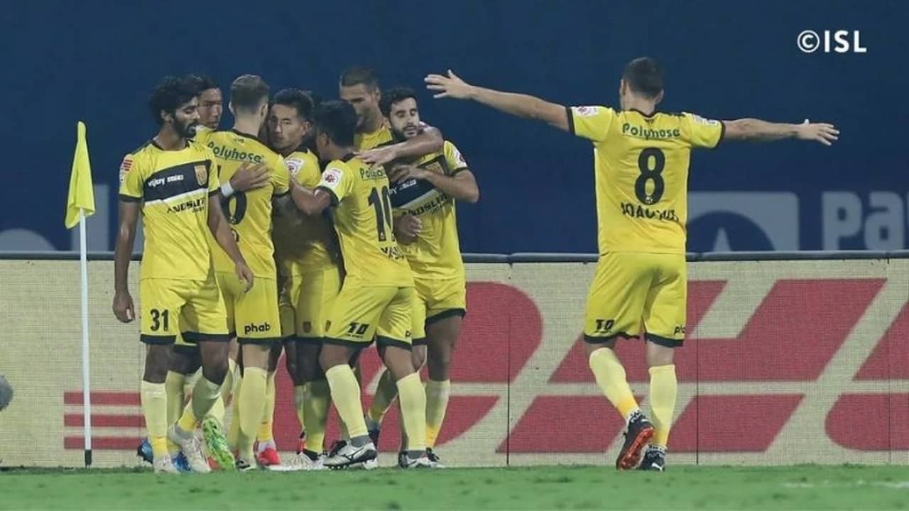 জোয়াও ভিক্টর আর নার্জারির ম্যাচে দ্বিতীয় গোলে বড় জয় নিশ্চিত করে হায়দরাবাদ এফসি। ছবি-আইএসএল