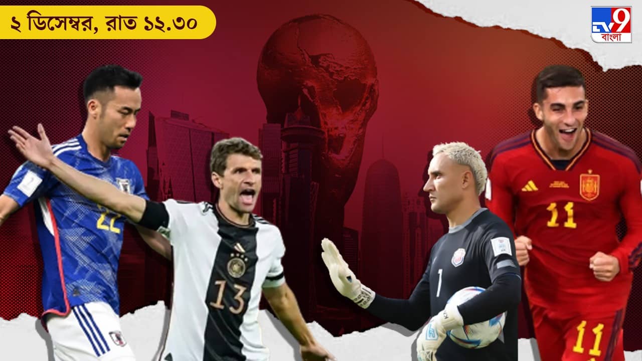 দোহা: শুরু হয়ে গিয়েছে কাতার বিশ্বকাপ। ১৮ নভেম্বর অবধি গোটা বিশ্ব ডুবে থাকবে কাতার বিশ্বকাপে (Qatar World Cup 2022)। দেশ-বিদেশের ফুটবল প্রেমীদের জন্য এ বারের বিশ্বকাপ আলাদা হতে চলেছে। করোনার পর এই প্রথম ফুটবল বিশ্বকাপ হচ্ছে। ধারা বদলে এ বার জুন-জুলাইয়ে নয়, বিশ্বকাপ হচ্ছে শীতকালে। মোট ৩২ টি দল অংশ নিয়েছে এ বারের বিশ্বকাপে। আগামীকাল গ্রুপ-ই এর ম্যাচে মুখোমুখি হবে জাপান ও স্পেন এবং জার্মানি ও কোস্টারিকা। TV9Bangla-র এই প্রতিবেদনে জেনে নিন কখন ও কীভাবে দেখবেন বিশ্বকাপে গ্রুপ-ই-এর নক আউটের টিকিট পাওয়ার ম্যাচ। উল্লেখ্য, গ্রুপ-ই-এর শীর্ষে রয়েছে স্পেন। দ্বিতীয় স্থানে রয়েছে জাপান। তিন ও চার নম্বরে রয়েছে কোস্টারিকা ও জার্মানি। জার্মানির নক আউটে ওঠার আশা অনেকটাই ক্ষীণ। এই গ্রুপ থেকে নক আউটের টিকিট পাওয়ার দৌড়ে রয়েছে স্পেন, জাপান ও কোস্টারিকা।