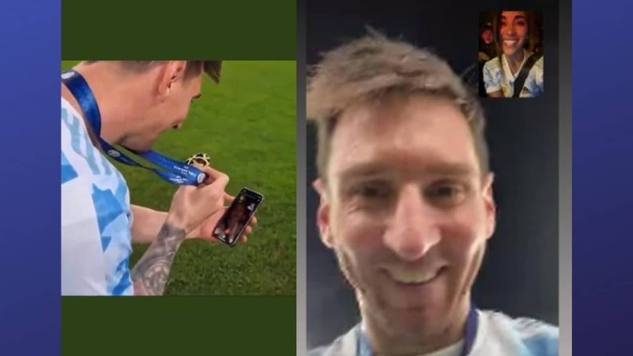 আবেগাপ্লুত মেসি মাঠের মাঝখানে দাঁড়িয়েই ভিডিও কল করলেন স্ত্রী আন্তোনেলাকে। গলায় ঝুলতে থাকা বিজয়ীর মেডেলটা ঠোঁটের সামনে নিয়ে এসে শিশুর মত চিৎকার করছেন মেসি। আর ভিডিও কলের ওপ্রান্তে স্বামীর এই উচ্ছ্বাস দেখে আবেগ চেপে রাখতে পারলেন না আন্তোনেলা। হাসি মুখে আন্তোনেলা ভাগ করে নিলেন সেই মুহূর্ত। মেডেল দেখিয়ে মেসি চিৎকার করে বললেন, “দেখো এটা কি!” আর সেই ভিডিও প্রকাশ্যে আসতেই আবেগে ভাসছেন মেসির সমর্থকরাও।
