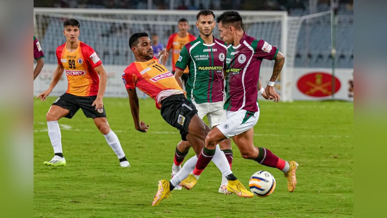 কলকাতা: আইএসএলের (ISL) ফিরতি ডার্বি নিয়ে টালবাহানার শেষ নেই। নির্ধারিত ছিল, ১০ মার্চ যুবভারতীতেই হবে মরসুমের শেষ বড় ম্যাচ। স্কোর লাইনের নিরিখে ২-১ এগিয়ে ইস্টবেঙ্গল। ইন্ডিয়ান সুপার লিগের ফিরতি ডার্বির আয়োজক ইস্টবেঙ্গল। যে কারণে এই ম্যাচ ঘিরে তুমুল আগ্রহ রয়েছে বাংলার ফুটবল প্রেমীদের মধ্যে। ইস্টবেঙ্গল যতই তলানিতে থাকুক লিগ টেবলের, এই সম্মানের ডার্বি জিততে পারলে সমর্থকদের কষ্ট অনেকটাই লাঘব হবে। সেই সঙ্গে আইএসএলে প্রত্যাবর্তনও হতে পারে। প্রথম চারে থাকার অঙ্কও সাজাতে সুবিধা, যদি মোহনবাগানকে হারাতে পারে ইস্টবেঙ্গল (East Bengal)। কিন্তু পরিবর্তিত পরিস্থিতিতে এখন ডার্বি কোথায় হবে, কোন দিন হবে, তা নিয়ে সংশয় রয়েছে। চিঠি চালাচালি, বাগবিতণ্ডার মধ্যেই কিন্তু ডার্বিতে লেগে গেল রাজনীতির রং।