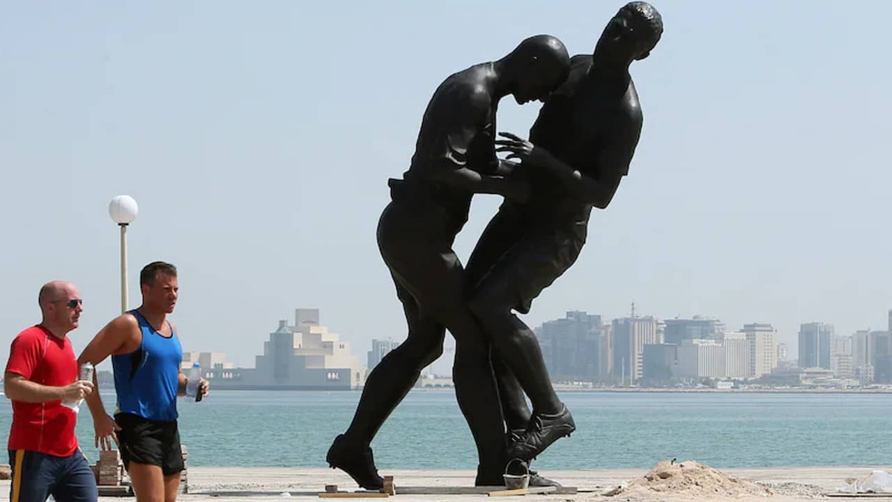 ৫ মিটার উচ্চতার (১৬ ফুট) ব্রোঞ্জের এই মূর্তিটিকে বলা হয় “Coup de tête”। ২০১৩ সালে দোহার সমুদ্রসৈকতে সেই মূর্তিটি বসানো হয়েছিল। তবে একমাসও সেটি সেখানে থাকেনি। ওই মূর্তিটির দ্বারা ইসলামিক নিয়ম লঙ্ঘিত হচ্ছে, এই যুক্তিতে সেটি সেখান থেকে সরিয়ে দেওয়া হয়।