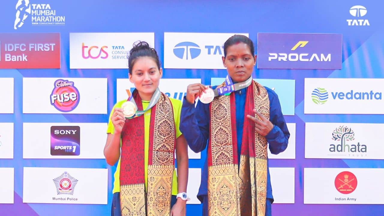 🥇 Thakor Nirmaben Bharatjee, 🥈 Reshma Kevate, and 🥉 Shyamali Sing shone bright, showcasing their prowess at #TMM2024 🙌#HarDilMumbai pic.twitter.com/1U1dpWaJj5