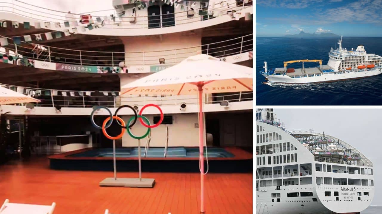 During Paris 2024, the Aranui 5 cruise ship functions as a floating Olympic village, hosting numerous athletes.#paris2024surfing#olympicsurf#olympicsurfing#isasurfing pic.twitter.com/Qs9r12eLbC
