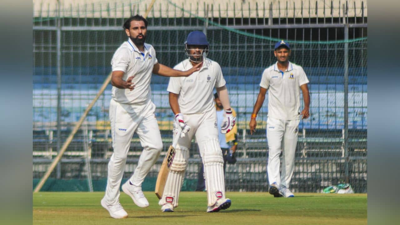 দ্বিতীয় দিনের শুরুতেই রজত পাতিদারের উইকেট তুলে নেন সূরজ সিন্ধু জয়সওয়াল। এরপর ৩৫তম ওভারের দ্বিতীয় বলে সূরজ তুলে নেন ওপেনার শুভ্রাংশু সেনাপতির (৪৭) উইকেট। এরপর ৪০তম ওভারের চতুর্থ বলে মহম্মদ সামি ফেরান মধ্যপ্রদেশের অধিনায়ক শুভম শর্মাকে (৮)। প্রায় এক বছর পর প্রতিযোগিতামূলক ক্রিকেটে ফিরে এটাই সামির প্রত্যাবর্তন উইকেট। এরপর ভেঙ্কটেশ আইয়ার (৩), সারাংশ জৈন (৭), কুমার কার্তিকেয়র (৯) উইকেট তুলে নেন সামি। সূরজ, সামিদের দাপুটে বোলিংয়ের সুবাদে মধ্যপ্রদেশের প্রথম ইনিংস গুটিয়ে যায় ১৬৭ রানে। সামি প্রথম ইনিংসে ১৯ ওভারে ৪টি মেডেন সহ ৫৪ রান খরচ করে ৪ উইকেট ঝুলিতে ভরেন। ইকোনমি রেট ২.৮৪। বাংলার সকল বোলারদের মধ্যে সবচেয়ে বেশি ডট বল করেছেন সামি (৯০টি)।