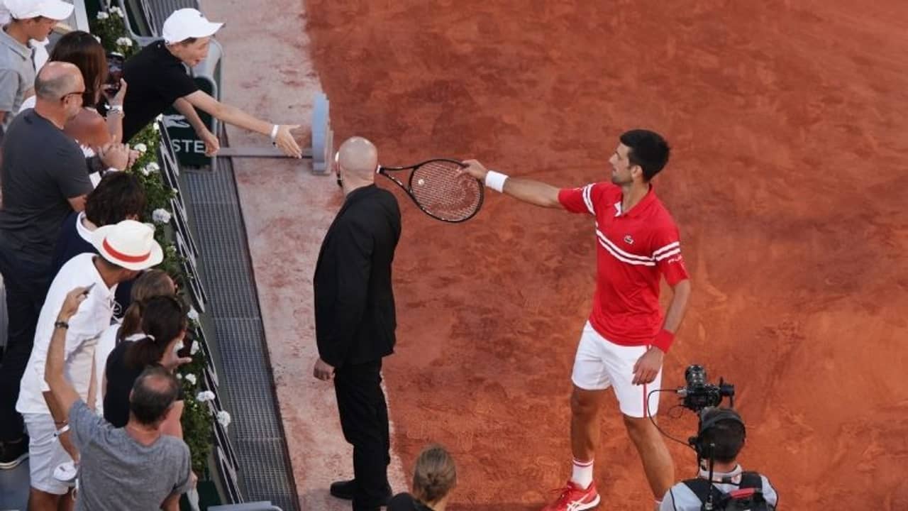 A gift to a great supporter ?#RolandGarros | @DjokerNole pic.twitter.com/F04a5UDNQr