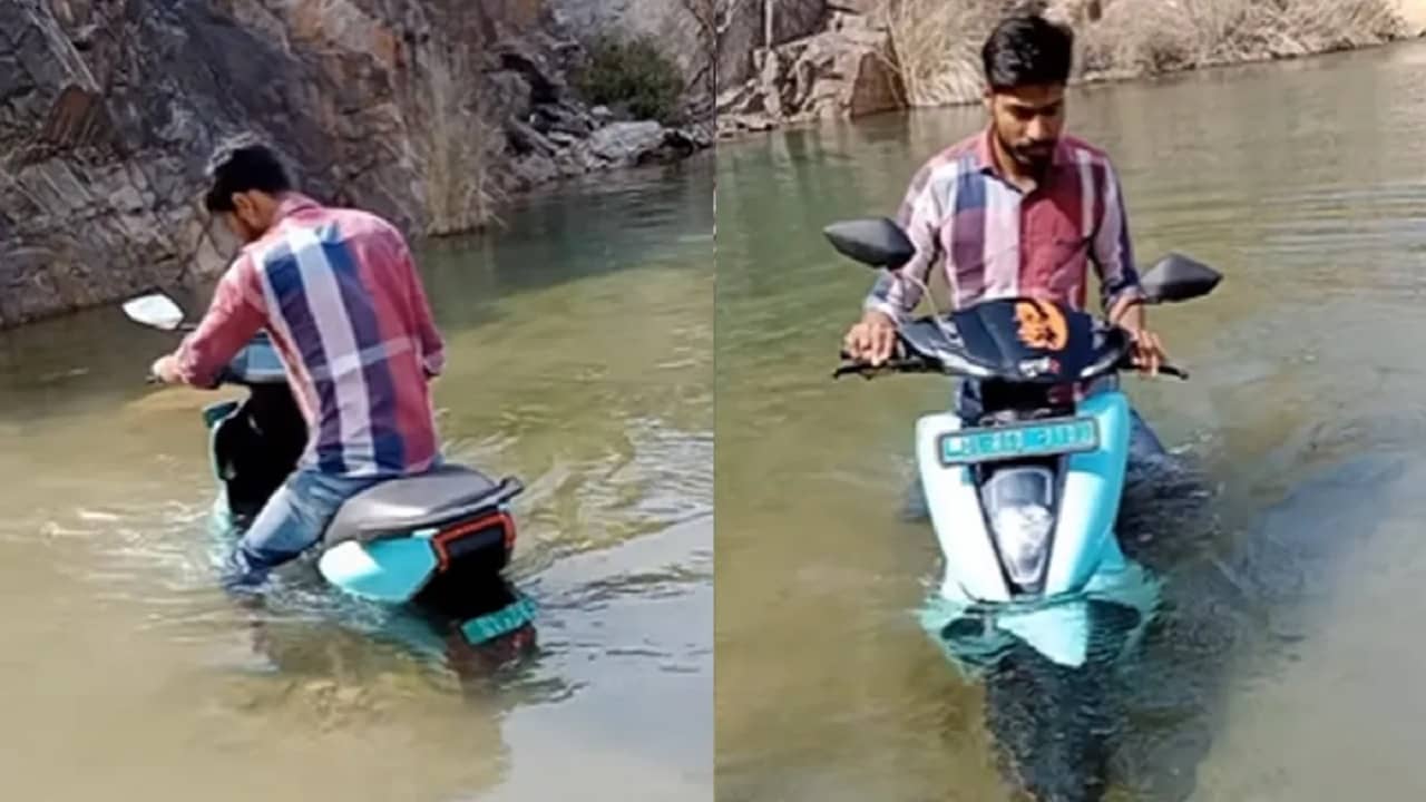 @mohitbhamla2187 নামের এক ব্যক্তি তাঁর ইউটিউব চ্যানেলে ভিডিয়োটি আপলোড করেছেন। সেখানে দেখা গিয়েছে, জলের ভিতরে চলছে Ather 450x ইলেকট্রিক স্কুটারটি। জলাশয়টি দেখতে ঠিক যেন একটা পুকুরের মতো। ভিডিয়োটি যখন শুরু হচ্ছে, তখন দেখা যাচ্ছে জলের মধ্যে রয়েছে ইলেকট্রিক স্কুটারটি। যদিও আরোহী সেটিকে টেস্টিংয়ের জন্য ইচ্ছে করে পুকুরে ফেলেছিলেন, নাকি স্কুটারটি পড়ে গিয়েছিল, সেই বিষয়টি স্পষ্ট নয়। ভিডিয়োটি দেখে মনে হচ্ছে, পরীক্ষা করার জন্যই স্কুটারটিকে জলে নামিয়েছেন চালক। Ather 450x-এর অর্ধেকের বেশি অংশ জলের তলায় রয়েছে। সেখানে দিব্যি চলছে স্কুটারটি। তখন আরোহী সেটিকে উল্টে দেন। তখন দেখা গেল, স্কুটারের LED টেইল ল্যাম্পগুলি যথাযথ ভাবে কাজ করছে।