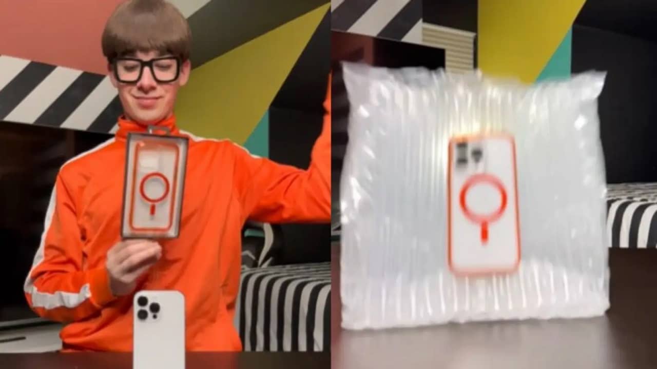 ইনস্টাগ্রামে @Vector নামক হ্যান্ডেল থেকে এয়ারব্যাগ ফোন কেসের ভিডিয়োটি শেয়ার করা হয়েছে। এখানে দেখা গেল, একজন সেই প্রোটেক্টিভ ফোন কেসটির একটি ভিডিয়ো দেখছেন। তারপর সেটিকে অর্ডার করেন এবং পরীক্ষা করে দেখেন। আর সেই পরীক্ষা করতে গিয়েই অনেকটা উচ্চতা থেকে ফোন-সমেত কেসটিকে নিচে ফেলে দিলেন। আর যেই না ফোনটা মাটিতে স্পর্শ করতে যাবে, কভার থেকে একটি এয়ারব্যাগ বেরিয়ে আসে এবং ফোনটিকে রক্ষা করে।