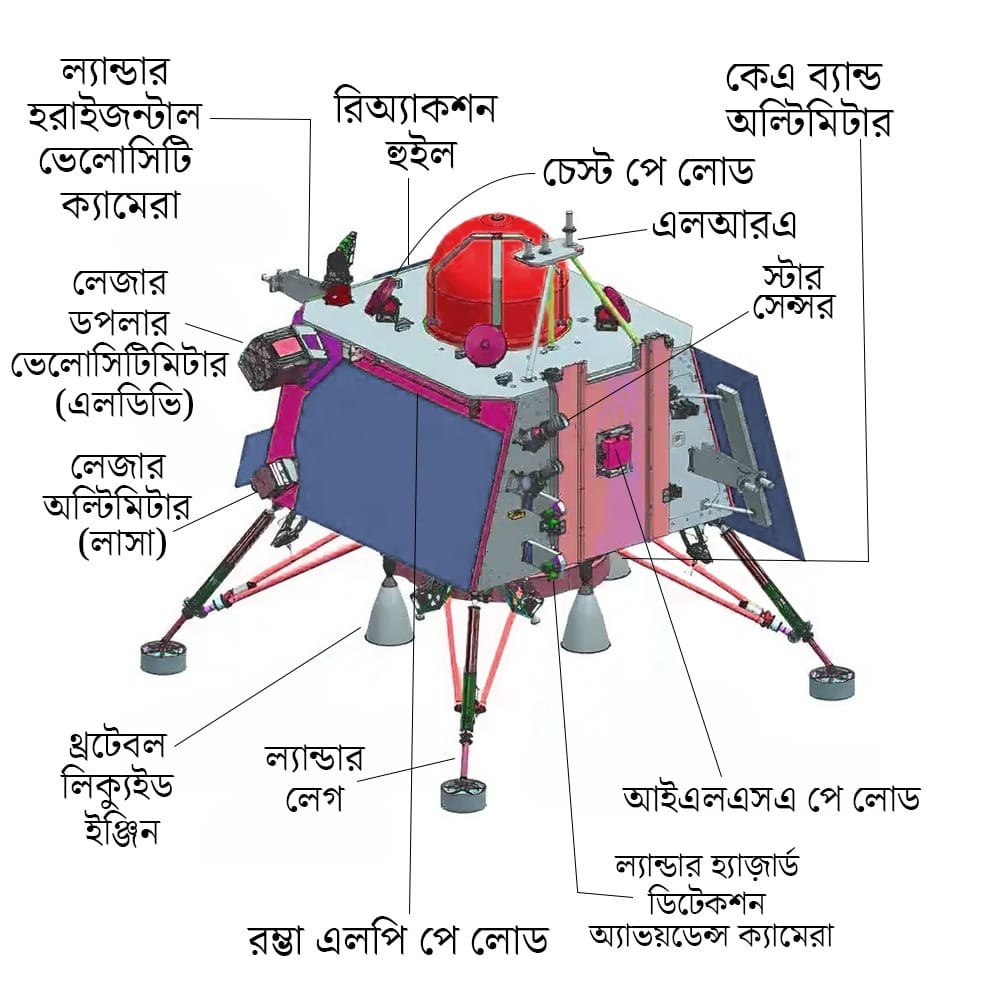 বুধবার 23 অগস্ট, সন্ধ্যা 5.55 মিনিটে চাঁদে অবতরণ করে চন্দ্রযান 3-এর ল্যান্ডার। নির্ধারিত সময়ের আগেই দক্ষিণ মেরুতে সফট ল্যান্ডিং করেছে চন্দ্রযান-3-এর ল্যান্ডার। এরপর রোভারটি 2 ঘন্টা 26 মিনিট পর চাঁদের পৃষ্ঠে অবতরণ করে। রোভার একটি 6-চাকার রোবট, যার সঙ্গে অনেক যন্ত্র যুক্ত। ভারতই প্রথম দেশ, যে চাঁদের দক্ষিণ মেরুতে সফল অবতরণ করেছে। এর সঙ্গে সঙ্গে ভারত চাঁদের পৃষ্ঠে অবতরণকারী চতুর্থ দেশ হয়ে উঠেছে। এর আগে যুক্তরাষ্ট্র, রাশিয়া ও চিনও চাঁদের পৃষ্ঠে পৌঁছেছে। চন্দ্রযান-3-এ কতগুলি ডিভাইস লাগানো হয়েছে এবং চাঁদে তাদের কাজ কী হবে? অনেকেই জানেন প্রত্যেকটি যন্ত্রের উদ্দেশ্য চাঁদে উপস্থিত বিভিন্ন তথ্য সংগ্রহ করা। কিন্তু কে কোন তথ্য সংগ্রহের দায়িত্বে রয়েছে, চলুন জেনে নেওয়া যাক।
