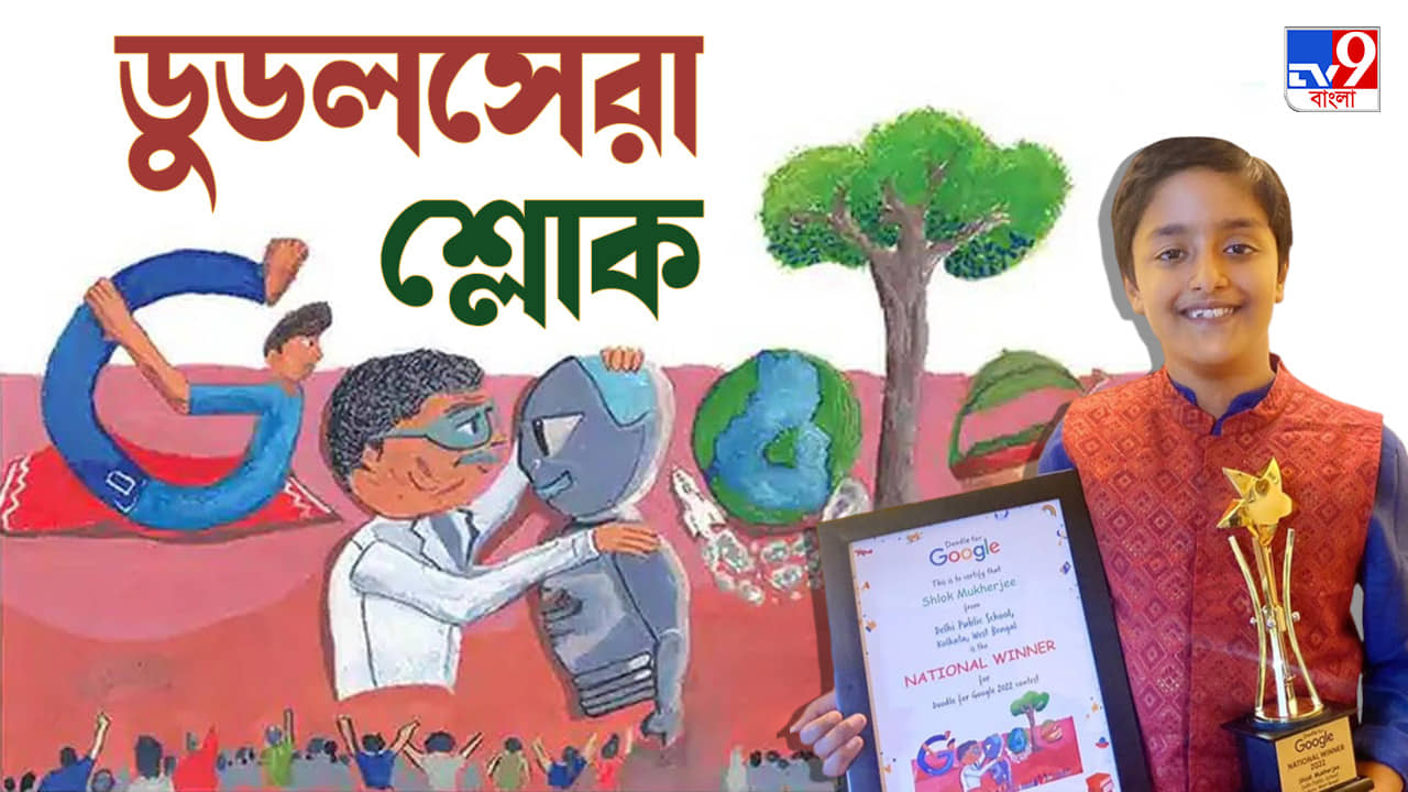 Doodle For Google 2022 Champion: ‘ভাবো, ভাবা প্র্যাক্টিস করো’, বলে গিয়েছিলেন মিস্টার ঘটক। কাঁকুড়গাছির ছোট্ট ছেলেটা যা ভাবল, গুগল তার হোমপেজে সারাদিন তা-ই টাঙিয়ে রাখল। দিনটা 14 নভেম্বর, শিশু দিবস। সে দিন বিশ্ববাসী গুগল স্যরের কোচিং সেন্টারে গিয়ে যাই অনুসন্ধান করেছেন, নজরে এসেছে কলকাতার শ্লোক মুখোপাধ্যায়ের আঁকা ছবি। প্রতি বছর শিশু দিবসে ‘ডুডল ফর গুগল’ প্রতিযোগিতার আয়োজন করে সার্চ ইঞ্জিন জায়ান্ট গুগল। ভারতের প্রায় 100-রও বেশি শহর থেকে 1 লাখ 15 হাজার ছবি জমা হয়েছিল। সেই প্রতিযোগিতাতেই সেরার সেরা হয়েছে বাংলার শ্লোক। ছবির বিষয়বস্তু ছিল ‘বিশ্বমঞ্চে ভারত’ (India On The Center Stage)। সেখানে দেখা গিয়েছে, রোবটের হাত ধরে রয়েছে মানুষ। আর সেই ছবি যার আঁকা, যার মস্তিষ্কপ্রসূত, তার বয়স মাত্র নয় বছর। নিউটাউনের দিল্লি পাবলিক স্কুলের পড়ুয়া শ্লোক মুখোপাধ্যায়।