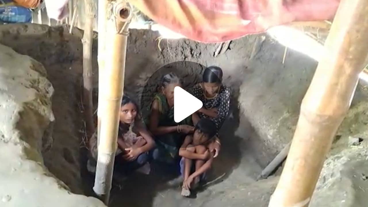ঝড়ে উড়িয়ে নিয়ে গেছে ঘর। মাথা গোঁজার ঠাঁই নেই। তাই প্রাণ বাঁচাতে মাটি খুঁড়ে চৌবাচ্চা বানিয়ে তাতেই বসবাস করছে ময়নাগুড়ি আমগুড়ি অঞ্চলের এক পরিবার।