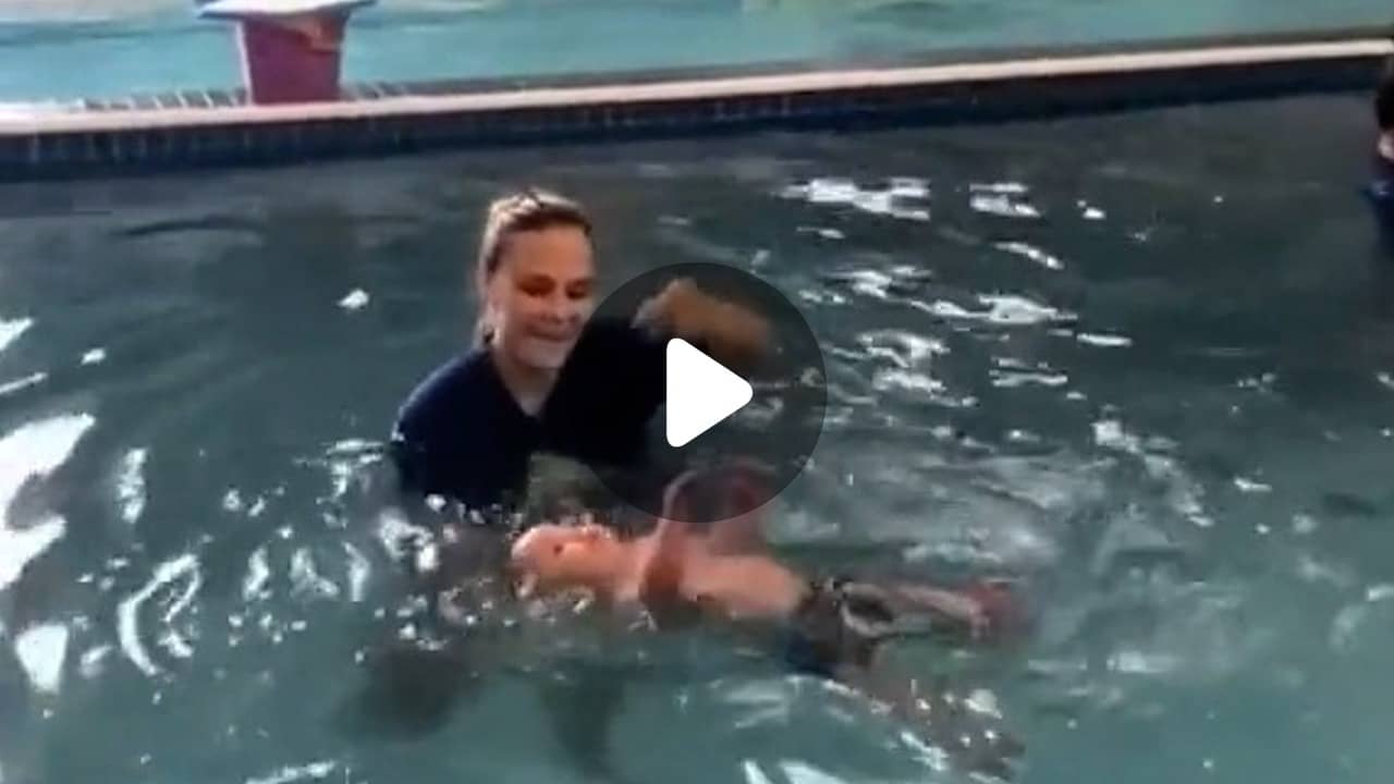 কোলের ছানাকে সুইমিং পুলের জলে ছুঁড়ে ফেলে দিলেন এই মহিলা। নীল সুইম স্যুটের মহিলা লাফিয়ে নামলেন পুলের জলে।জলের গভীরে তলিয়ে গেল শিশুটি। তবে কি ও ডুবে গেল? তিন চার সেকেন্ড পরে নিজে থেকেই ভেসে উঠে চিৎ সাঁতার দিল শিশু। তখন তাকে আদর করে কোলে তুলে নিলেন ওই মহিলা। ওই মহিলা আসলে একজন সাঁতার প্রশিক্ষক। শিশুটিকে তিনি শেখাচ্ছেন, কীভাবে সাঁতার কাটতে হয়। শিশুদের মধ্যে সাঁতার কাটার সহজাত প্রবৃত্তি থাকে। এই ভিডিয়ো এখন রীতিমতো ভাইরাল।