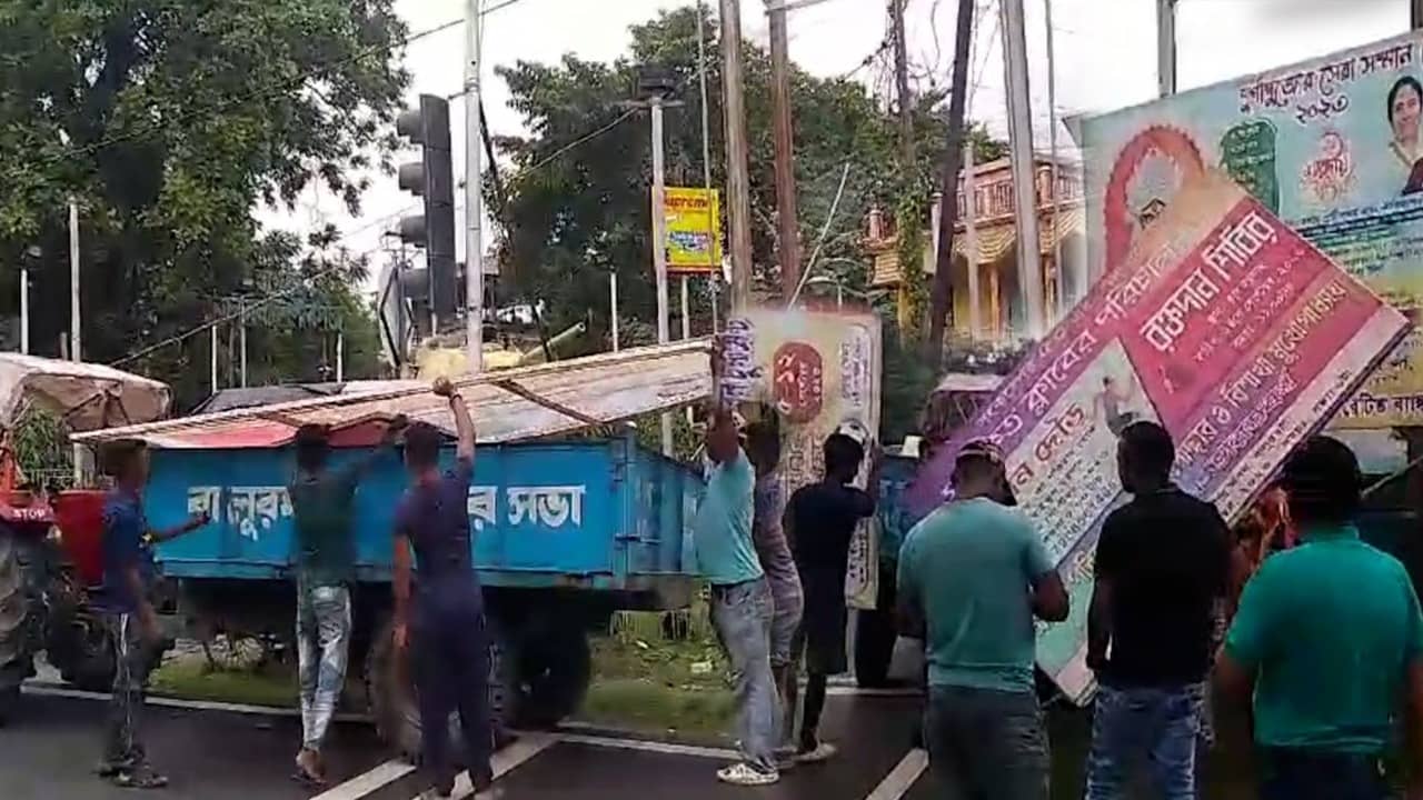 Balurghat News: পুজোর আগেই সরছে ফ্লেক্স