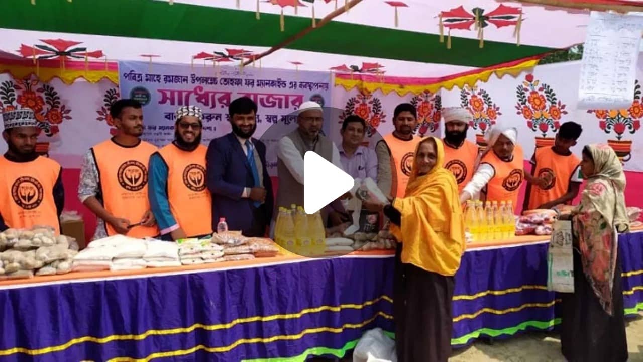 মূল্যবৃদ্ধির আঁচে বিশ্বজুড়ে নাজেহাল সাধারণ মানুষ। নিম্নবিত্ত, মধ্যবিত্তদের পক্ষে দৈনন্দিন সংসার খরচ চালানোই দায় হয়ে পড়েছে। আর এই বাজারে কিনা মাছ-মাংস মিলছে ৫০ টাকায়। ১০ টাকায় তেল, চিনি,ডাল-সহ বিভিন্ন খাদ্যপণ্য! ‘সাধ্যের বাজার’ থেকে এমন দামেই খাদ্যপণ্য কিনে নিয়ে হাসিমুখে বাড়ি ফিরছেন সাধারণ মানুষ। বাংলাদেশের রংপুর সদর উপজেলায় এমনই এক বাজার খোলা হয়েছে। আসলে এটি একটি দোকান। নিম্নবিত্ত ও নিম্ন মধ্যবিত্তদের সাধ্যের মধ্যে সাধর পূরণের জন্য খোলা হয়েছে অস্থায়ী এই দোকান। ইতিমধ্যেই সাধারণ মানুষের মধ্যে এই দোকান ব্যাপক সাড়া ফেলেছে। গোটা রমজান মাস জুড়ে খোলা থাকবে এই দোকান। দেলোয়ার হোসেন নামে এক কলেজ পড়ুয়ার উদ্যোগে এই দোকান খোলা হয়েছে। তাঁর সঙ্গে যোগ দিয়েছেন বালাচওড়া এলাকার আরও কয়েকজন শিক্ষার্থী এবং ব্যবসায়ী। রোজ বিকেল ৪টে থেকে রাত ৮টা পর্যন্ত খোলা থাকছে ‘সাধ্যের বাজার’। এই বাজার হাসি ফুটিয়েছে নিম্নবিত্ত, নিম্ন মধ্যবিত্তদের মুখে। তাঁরা বলছেন,বাজারে একটা ব্রয়লার মুরগি কিনতে গেলে কমপক্ষে ৩০০ থেকে ৪০০ টাকা লাগে। সেখানে ৫০ টাকা দিলেই এই দোকান থেকে প্রয়োজনীয় মাংস পাওয়া যাচ্ছে। কাজেই গরিব মানুষের পাতে অল্প হলেও মাংস উঠছে।
