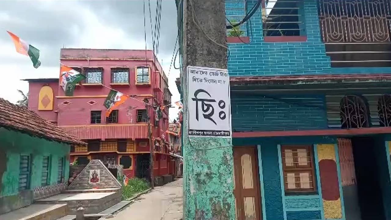 Domjur Poster: ডোমজুড়ের জগদীশপুর অঞ্চলের বেশ কয়েকটি জায়গায় দেখা গেল ছি:লেখা পোস্টার। তাতে আরো লেখা রয়েছে 'আমাদের ভোটটাও দিতে দিলেন না? ছিঃ'।