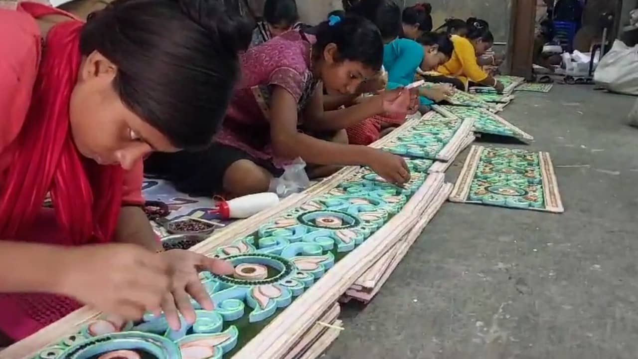 বাড়তি উপার্জনের জন্য পুজোর মন্ডপ তৈরিতে ব্যবহৃত নানা উপকরণ তৈরি করছেন স্কুল কলেজ পড়ুয়ারা। পুজোর আগে হাতের কারুকার্য করে বাড়তি উপার্জন করছেন গৃহবধূরাও। বালুরঘাট শহরের ব্রীজকালি এলাকায় গত এক মাসের বেশি সনয় ধরে হাতের নানা কাজ করছেন প্রায় ৬০ জন।