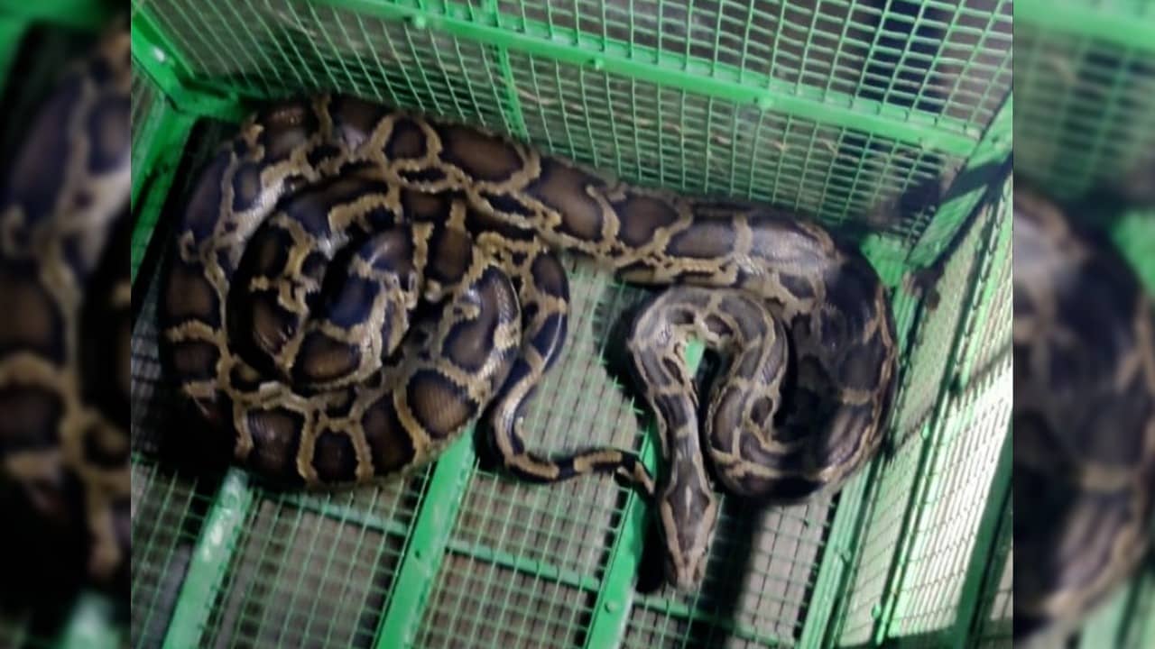 সুন্দরবন থেকে ১২ ফুটের একটি বিশাল পাইথন উদ্ধার করল বনদপ্তর। বুধবার রাতে দক্ষিণ ২৪ পরগনা জেলার পাথরপ্রতিমা ব্লকের শ্রীধরনগর গ্রাম পঞ্চায়েতের উপেন্দ্রনগর এলাকা থেকে উদ্ধার হয় পাইথনটি। মৎস্যজীবীদের পাতা জালে পাইথনটি জড়িয়ে পড়েছিল। পরে মৎস্যজীবীরা জালের মধ্যে জড়িয়ে থাকা পাইথনটিকে উদ্ধার করে ডাঙায় নিয়ে আসে। সুন্দরবন এলাকায় আগে সেভাবে পাইথনের দেখা মেলেনি। আচমকা মৎস্যজীবীদের জালে পাইথন ধরা পড়ায় উদ্বিগ্ন বনদপ্তরের আধিকারিকেরা। খবর পেয়ে বনদপ্তরের রামগঙ্গা রেঞ্জ অফিস থেকে বডন কর্মীরা ঘটনাস্থলে পৌঁছে বিশাল আকৃতির পাইথনটিকে উদ্ধার করেন। আপতত জেলা বনদপ্তরের ধনচি বিট অফিসে পাইথনটিকে পর্যবেক্ষণে রাখা হয়েছে। সেখানে শারীরিক পরীক্ষা চালানো হবে। বনদপ্তর জানিয়েছে, এটি একটি ‘বরমিজ পাইথন’। সুন্দরবনে এই ধরনের পাইথন উদ্ধারের ঘটনা প্রথম। বনদপ্তরের আনুমান করছে, বাংলাদেশ থেকে সুন্দরবনে চলে এসেছে পাইথনটি।
