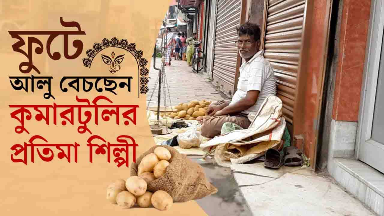 ফুটে আলু বেচছেন কুমারটুলির প্রতিমা শিল্পী