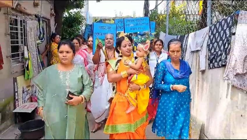 জন্মাষ্টমীর দিন শিশু কৃষ্ণকে কোলে নিয়ে রাস্তায় মা যশোদা ও সুদামা ডেঙ্গু নিয়ে সচেতন করতে পৌঁছলেন এলাকাবাসীর বাড়ির দরজায়। ডেঙ্গু সচেতনতা বৃদ্ধির মধ্যে দিয়ে এভাবেই জন্মাষ্টমী পালন করা হল বিধান নগরের দত্তাবাদ অঞ্চলে। বিধান নগরে এই মুহূর্তে ডেঙ্গি আক্রান্ত সংখ্যা ৭০০ ছাড়িয়েছে