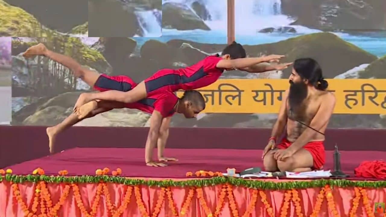 অনুষ্ঠানে বিভিন্ন রকম যোগব্যায়াম করতে দেখা যায় পতঞ্জলী যোগপীঠের ছাত্রছাত্রীদের। একাধিক ‘অসম্ভব’ যোগাসনও করে তাঁরা।
