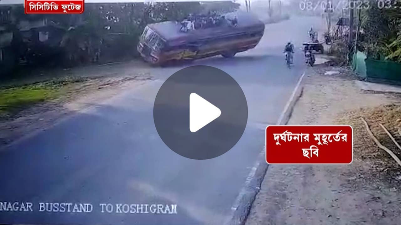 কেতুগ্রামের দধিয়া থেকে কাটোয়া যাওয়ার পথে কাটোয়ার ন’নগরের কাছে ভয়াবহ এই দুর্ঘটনা। সিসিটিভি ফুটেজে ধরা পড়েছে দুর্ঘটনার মুহুর্ত। ভিডিয়ো দেখেই ঠাহর করা যায় বেপরোয়া গতি সামলাতে না পেরেই এই দুর্ঘটনা। ঘটনায় পুরুষ-মহিলা-শিশু মিলিয়ে আহত প্রায় ৪০। আহতদের উদ্ধার করে স্থানীয়রাই পৌঁছে দেয় কাটোয়া হাসপাতালে। খবর পেয়ে ঘটনাস্থলে কাটোয়া থানার পুলিশ।
