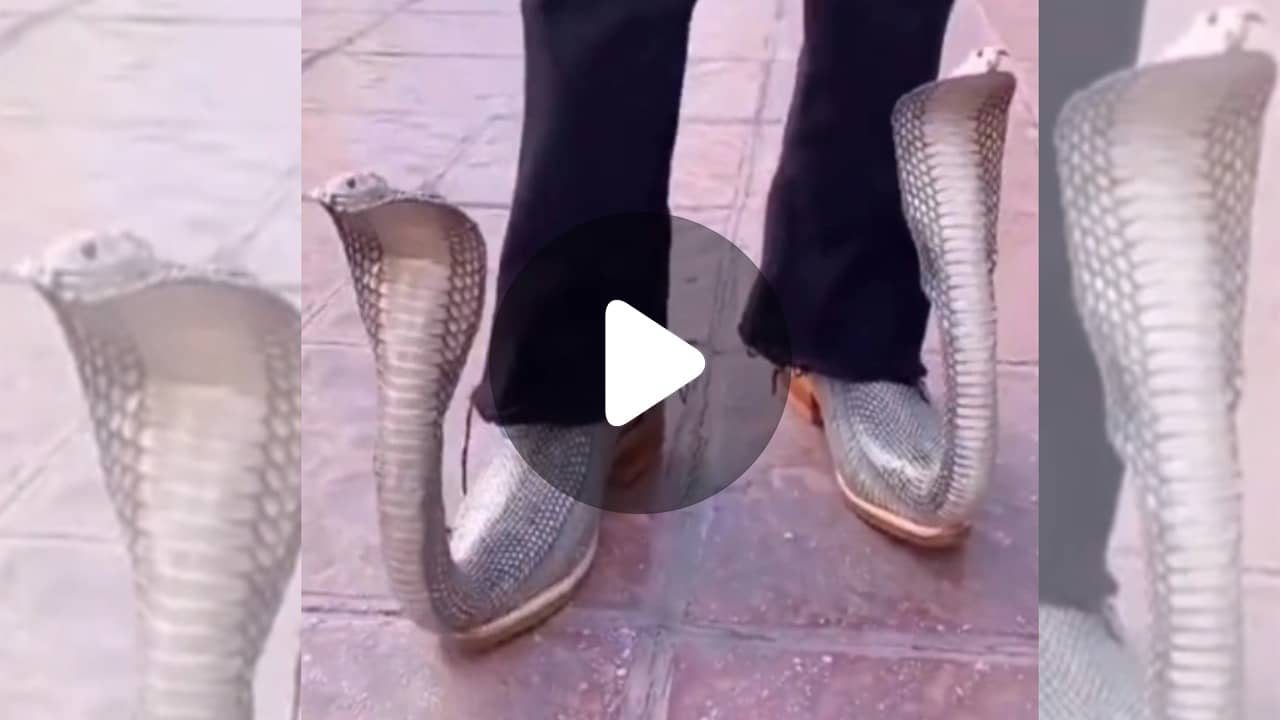 একটি ভিডিয়োতে দেখা গেল এক জোড়া জুতো, জুতো জোড়ায় ফণা তুলে আছে কেউটে সাপ। জুতোর সামনের দিকটা লম্বা, হুবহু ফণা তোলা কেউটে যেন