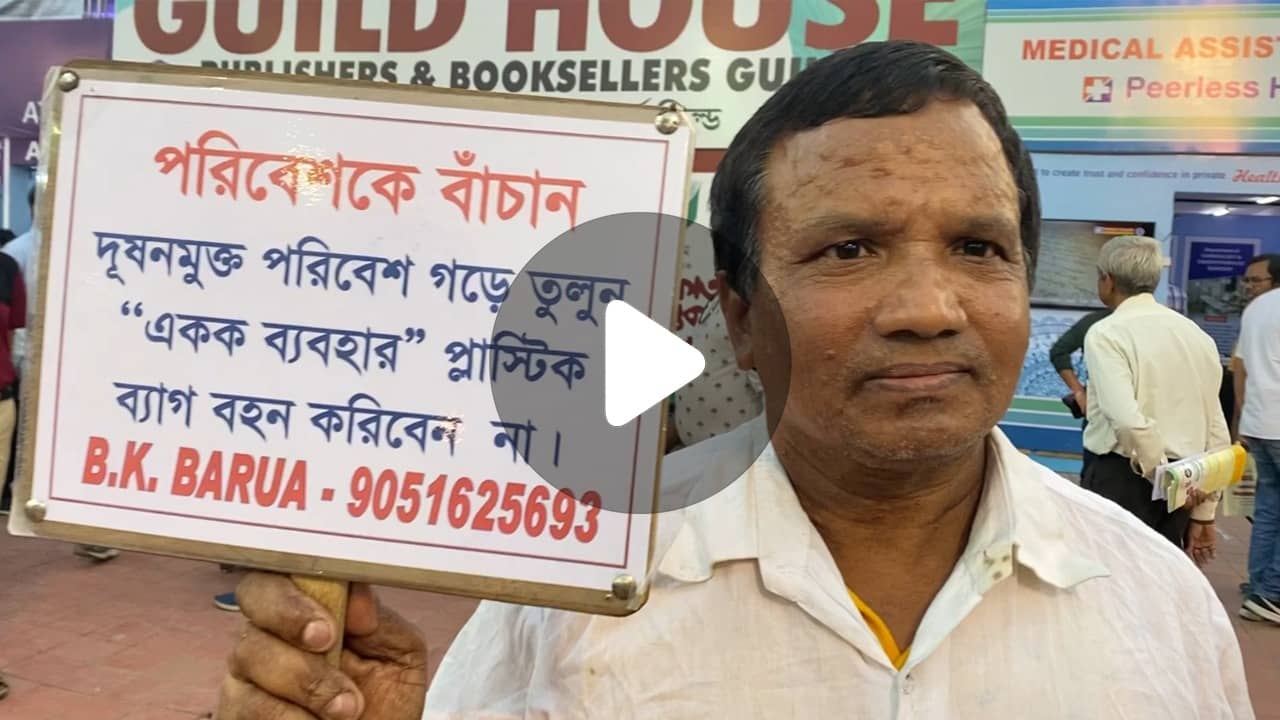 পরিবেশ দূষণ যেন দৈনন্দিন ঘটন। সকাল থেকে রাত পর্যন্ত পরিবেশ দূষণ হয়ে চলেছে বিভিন্ন কারণে। পরিবেশ দূষণের একটা বড় কারণ হল প্লাস্টিকের ব্যবহার। সকালে বাজার করা থেকে শুরু করে শপিং করা, সবকিছুতেই প্লাস্টিক। কিন্তু এবারের বইমেলাতে ব্যতিক্রমী চিত্র ধরা পড়ল। বিমল কুমার বড়ুয়া হাতে প্ল্যাকার্ড নিয়ে দাঁড়িয়ে আছেন পরিবেশ রক্ষার দাবিতে।
