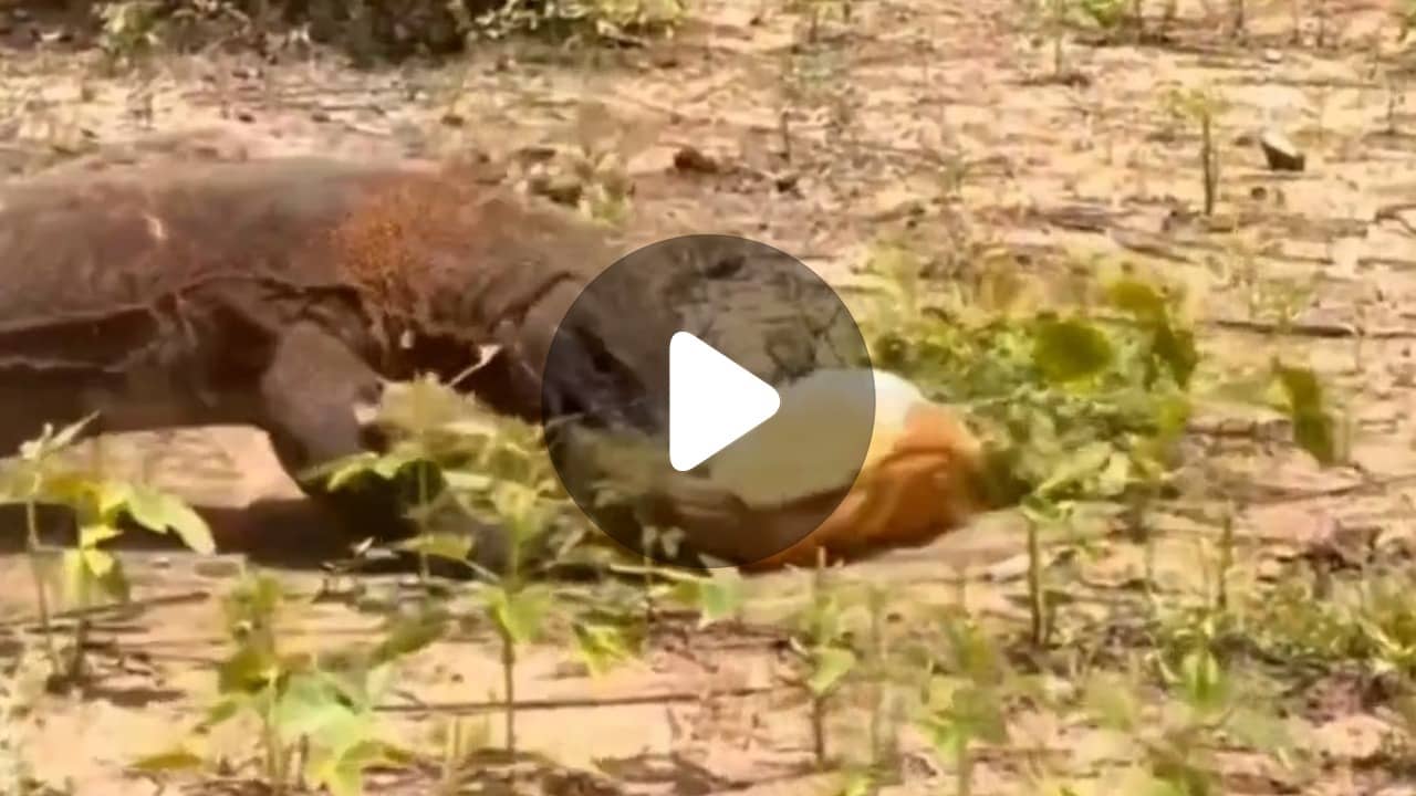 হরিণও ড্রাগনটির গতির সঙ্গে পাল্লা দিতে ব্যর্থ হয়। পালাবার পথ না পেয়ে শেষে আত্মসমর্পণ করে নিরীহ প্রাণীটি। ওই ড্রাগনটি প্রথমে হরিণটাকে তার চোয়ালে শক্ত করে ধরে থাকে