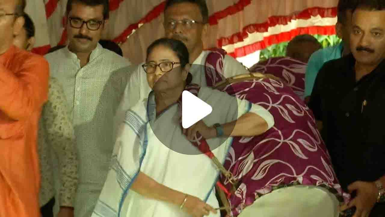 Mamata Banerjee News: সুরুচি সংঘের পুজোর উদ্বোধনে দেখা গেল এক অন্য ছবি। কাঁধে ঢাক নিয়ে দেখা গেল মুখ্যমন্ত্রীকে। ঢাক বাজালেনও তিনি। সঙ্গে কাঁসর নিয়ে যোগ্য সঙ্গত করে গেলেন অরূপ বিশ্বাস।