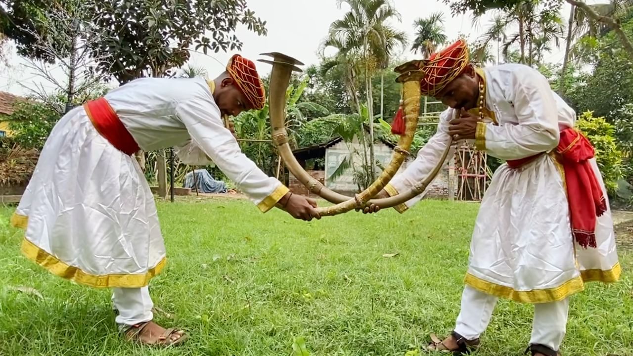 বাল ঠাকরের বাজনাও বটে। তাঁর রাজনৈতিক মিছিলে বাজিয়েছেন এঁরা। রাঘবপুর গ্রামের কালী পুজো। সে উপলক্ষেই এই তুতারী বাজনা মহারাষ্ট্র থেকে নিয়ে আসা। এটা বাজতেই গোটা গ্রামের মানুষজন ছুটে আসছেন । কারণ এটা তো এখানে এই প্রথম।