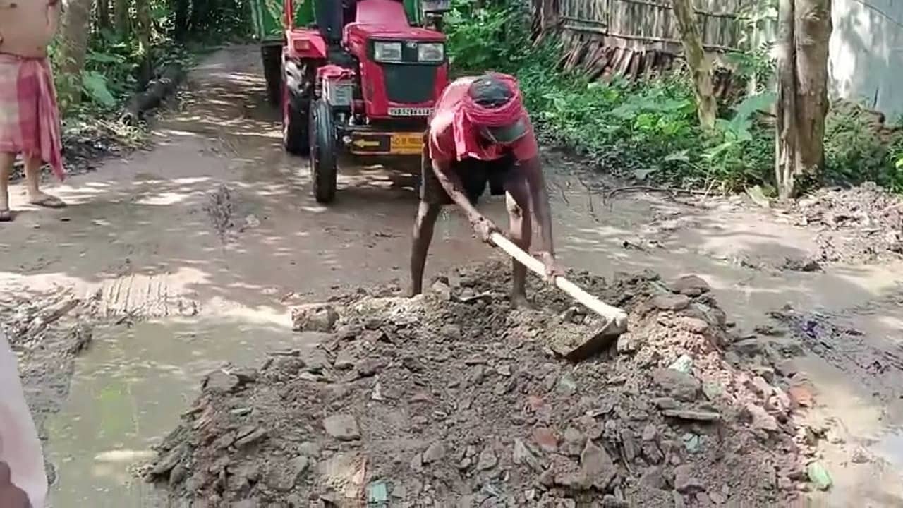 বিগত দিনে একাধিকবার তারা পঞ্চায়েত প্রধানকে জানিয়েছিলেন কিন্তু রাস্তা ঠিক করার কাজে হাত লাগানো হয়নি। ছেলেমেয়েরা বিদ্যালয়ের যেতে গেলে এক হাঁটু জল ডিঙিয়ে যেতে হয়। জল জমে থাকার কারনে মশার লাভা এবং বিষাক্ত পোকামাকড়ের উৎপত্তি হয়। এলাকার মানুষের দাবি, দীর্ঘদিন ধরে প্রশাসনকে জানিও কোন যখন লাভ হয়নি তাহলে নিজেরাই এই রাস্তা ঠিক করবেন। তাই এলাকার মানুষরাই চাঁদা তুলে রাস্তা মেরামতির কাজে হাত লাগিয়েছেন। যদিও এ প্রসঙ্গে ওই এলাকার পঞ্চায়েত মেম্বার বলেন, রাস্তাটির বেহাল অবস্থার কথা তিনি পঞ্চায়েতে জানিয়েছিলেন, অল্পদিনের মধ্যেই রাস্তাটি পাকাপোক্ত ভাবে করার আশ্বাস দিয়েছে পঞ্চায়েত।