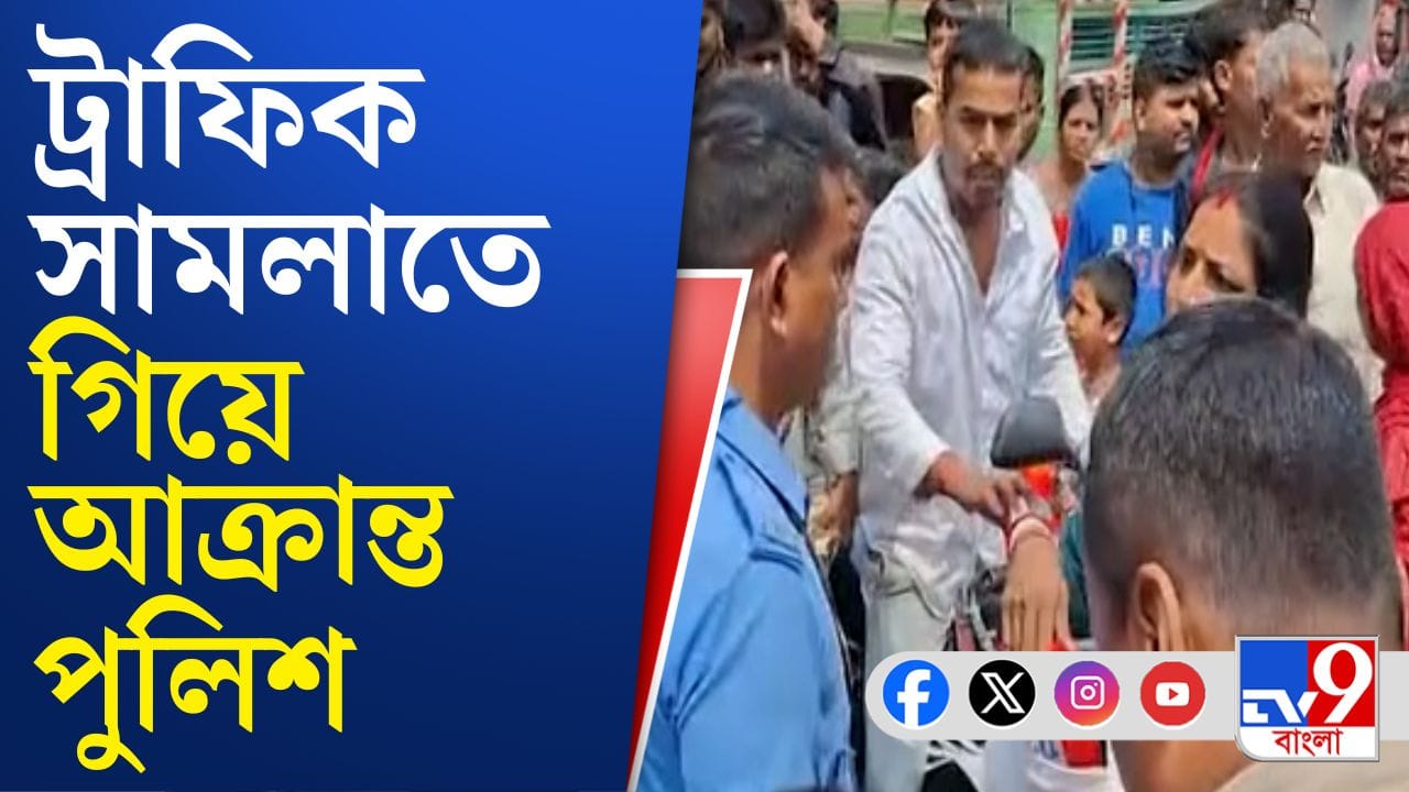 রাস্তায় যানজট, ট্র্যাফিক নিয়ন্ত্রণ করতে গিয়ে মার খেলেন পুলিশ আধিকারিক