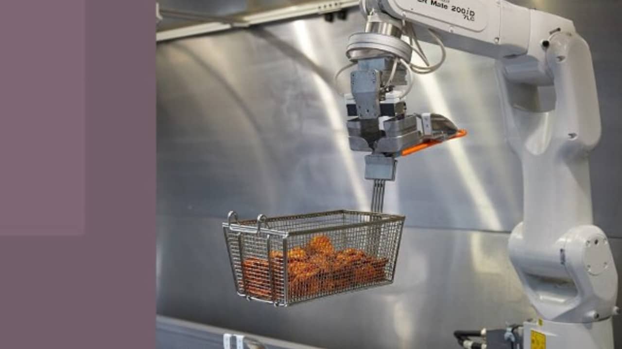 যন্ত্রে সন্দেশ, রসগোল্লার মতো মিষ্টি তৈরি করে। এবার সিঙ্গাপুর আর সিওলের বাজারে এসেছে রোবটের ভাজা চিকেন। নাম রোবার্ট চিকেন। দক্ষিণ কোরিয়ার ১৫টি রেস্তোরাঁয় আর সিঙ্গাপুরের ১টি রেস্তোরাঁয় চিকেন ভাজছে রোবট। ঘণ্টায় ১০০টি চিকেন ভেজে ফেলে এই যন্ত্র রাঁধুনি। যারা খেয়েছেন তাঁরা বলছেন বেশ সুস্বাদু এই চিকেন ভাজা। অনেকে বলছেন মানুষ সেফের থেকেও ভাল স্বাদ এই রোবোটিক রাঁধুনির।