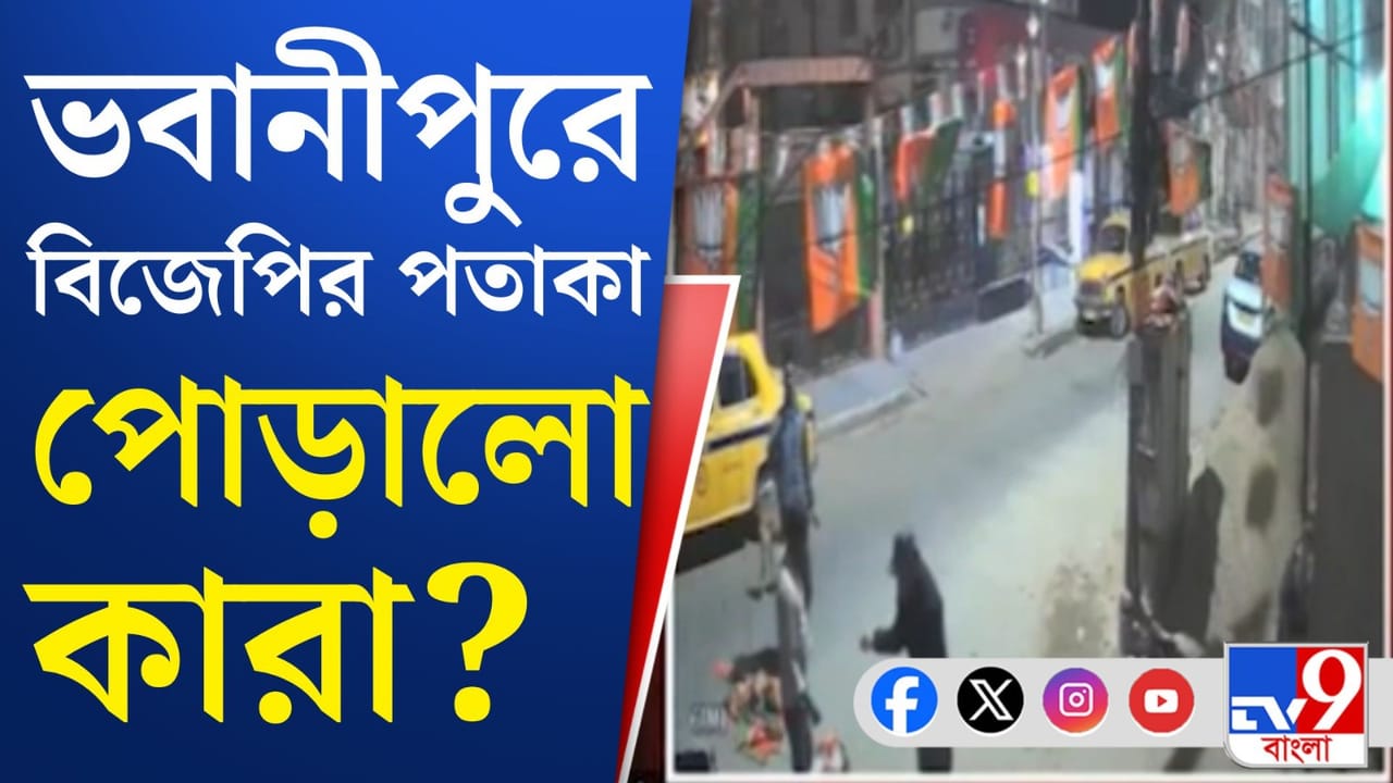 Bhowanipur: রাতে বিজেপির পতাকা টেনে নামিয়ে পোড়াচ্ছে কারা?