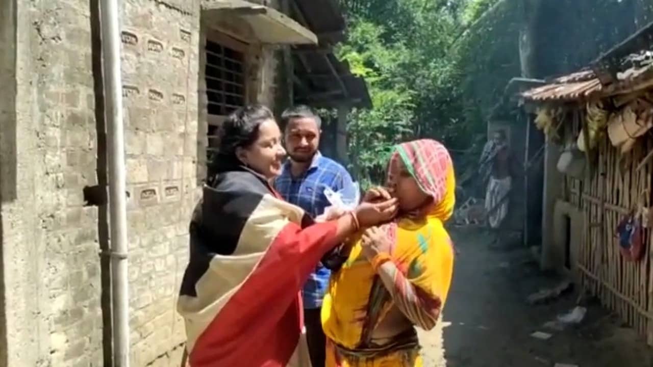 তৃণমূলের টিকিটের জয়ী প্রার্থী তাই কারো মুখে খাইয়ে দিচ্ছেন মিষ্টি, আবার কারো হাতে ধরিয়ে দিচ্ছেন মিষ্টির প্যাকেট, এভাবেব নিজে হাতে বাড়ি বাড়ি মিষ্টির প্যাকেট পৌঁছে দিচ্ছেন তৃণমূলের জয়ী প্রার্থী (প্রাধান)।