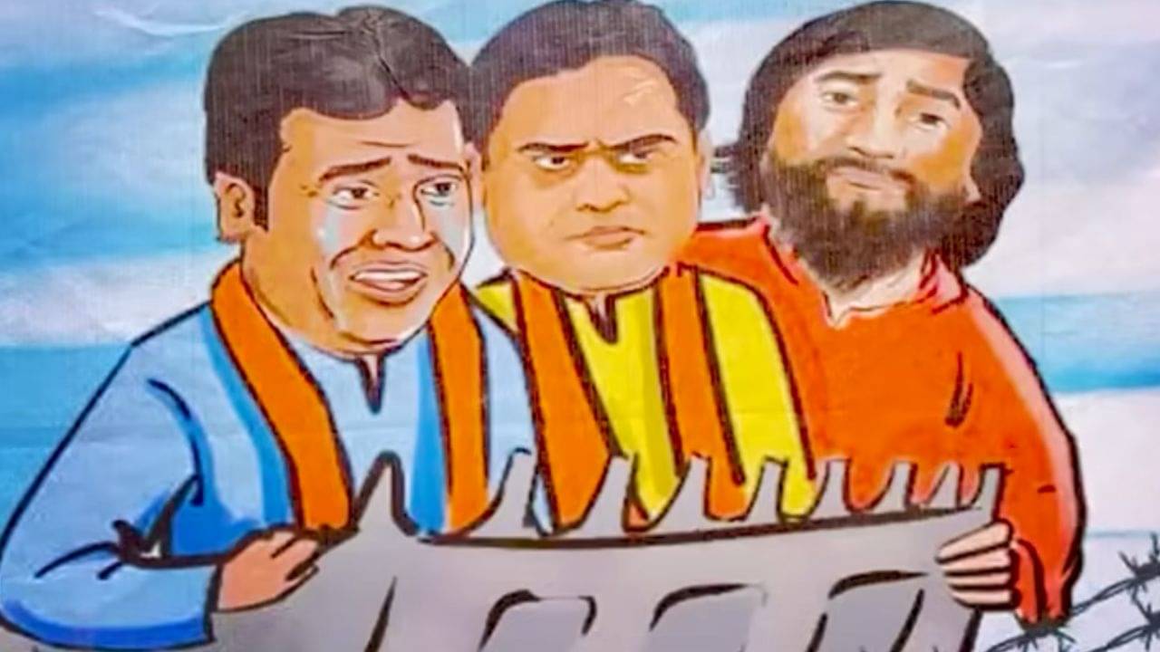 গেরুয়া পরা তিনজনকে পে লোডারে ফেলে দেওয়া হচ্ছে ওপারে, কেন এমন কার্টুন আঁকল তৃণমূল?