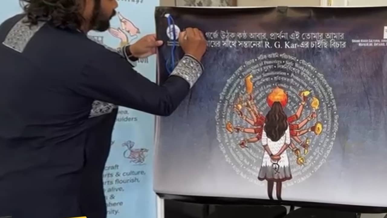 নিউ ইয়র্ক: উৎসবের সঙ্গে প্রবাসে পুজোয় জারি প্রতিবাদও। এই প্রতিবাদ চলবে পুরো অক্টোবর জুড়ে। অক্টোবরের প্রথম সপ্তাহে ২৫টি পুজো, সঙ্গে প্রতিবাদ। অক্টোবরের দ্বিতীয় সপ্তাহে ৫৫-৬০টি পুজো, সঙ্গে প্রতিবাদ। এমনকি অক্টোবরের তৃতীয় সপ্তাহের পুজোগুলিও চলতে থাকবে প্রতিবাদ। পুরোটাই সেতু দ্য ব্রিজের উদ্যোগে। সেতুর সামগ্রিক দাবি বিদেশের বাঙালিদের মধ্যে এনেছে দ্রোহের সংহতি। সেতুর তরফ থেকে একটি পোস্টারের ডিজিটাল কপি শেয়ার করা হয়েছে যা নিউইয়র্কসহ আমেরিকার বিভিন্ন শহরে। শেয়ার হয়েছে অস্ট্রেলিয়া, কলম্বিয়া আর কানাডায় পুজো মণ্ডপেও।